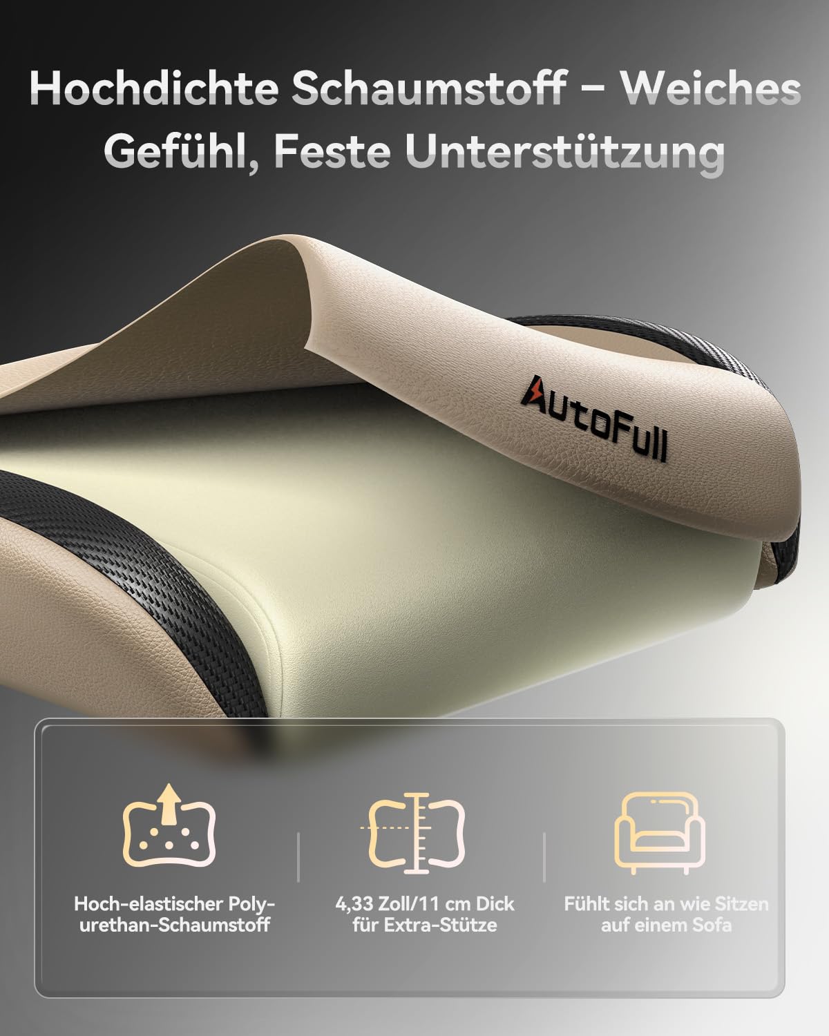 ["AutoFull is the official sponsor of international professional leagues, including WCA, LPL, and MDI, we are always committed to providing our customers worldwide with the ultimate gaming experience. The strength of the AutoFull brand and the level of the gaming chair guarantee the quality of the chair.", "Ergonomic Design: The ergonomic design deeply fits the spine and provides a perfect gaming experience. The newly improved ergonomic lumbar cushion mimics the design of the lumbar spine and effectively relieves lumbar fatigue. The adjustable footrest brings the best relaxation for the feet, which is very suitable for gaming and office rest.", "【HIGH-QUALITY MATERIAL】 4.3 inches thick cushion with good load-bearing capacity and will not collapse after long sitting. The casters form a great stable structure that ensures the service life and safety of the gaming office chair.", "【Multifunctional】: 360-degree swivel, the chair's backrest can lock at any angle between 90º and 170º, height-adjustable seat and armrests to adapt to different table heights and height requirements, all to find your most comfortable position, perfect for home office, gaming, and lunch breaks.", "【Installation and Excellent Customer Service】: We provide detailed installation instructions to ensure your quick installation, a free replacement or refund within 30 days for any reason, and a 3-year warranty with free replacement for damaged parts. Dissatisfaction with our products, please contact us the first time, we will do our best to solve the problem for you."]