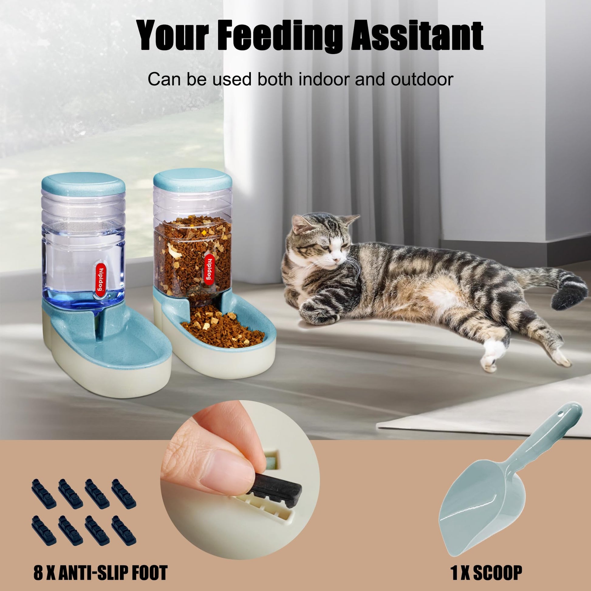["1. Automatic Feeding and Watering System: natural gravity supply system, no electricity required, eco-friendly and can be used anywhere.","2. Size and Capacity: Both the feeder and waterer measure 32 x 21 x 32 cm; large capacity 3.8 l, holds about 7 days for small pets, 3 days for large pets, you can confidently go on vacation, work, parties, without worrying about pets being hungry.","3. User-Friendly Design: side cutouts for easy lifting and cleaning, non-slip rubber feet for secure placement.","4. Easy to Clean: Barrel and housing of the automatic feeder can be separated, you can rinse directly with water, it is recommended to wash once a week","5. Material: BPA-free. Made of environmentally friendly, non-toxic plastic. Protect your pet's health."]