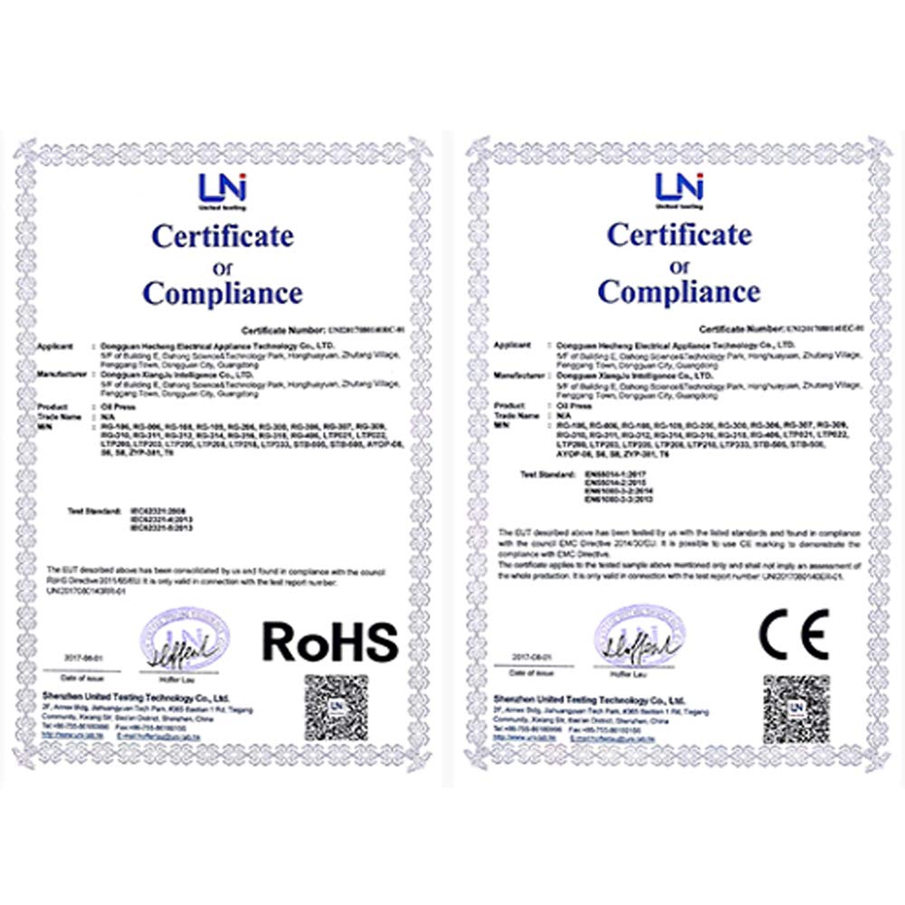 ["Home oil press: Remove the hard shell from the nut, but retain the nutritional benefits for the health of the food.","Extraction of hot oil pressing: Extraction by hot pressing produces a naturally pure and aromatic oil that maintains the nutritional value of the food.","High oil yield: The oil extraction rate is up to 60%, depending on the oil seeds.","Ideal for almonds, hazelnuts, hemp seeds, flaxseeds, macadamia nuts, peanuts, pine nuts, pistachios, pumpkin seeds, sesame seeds, sunflower seeds, walnuts, and more.","Safe operation: The oil press machine is made of food-grade 304 stainless steel, easy to use; simply plug in, feed the seeds into the hopper, then press start, it will process automatically."]