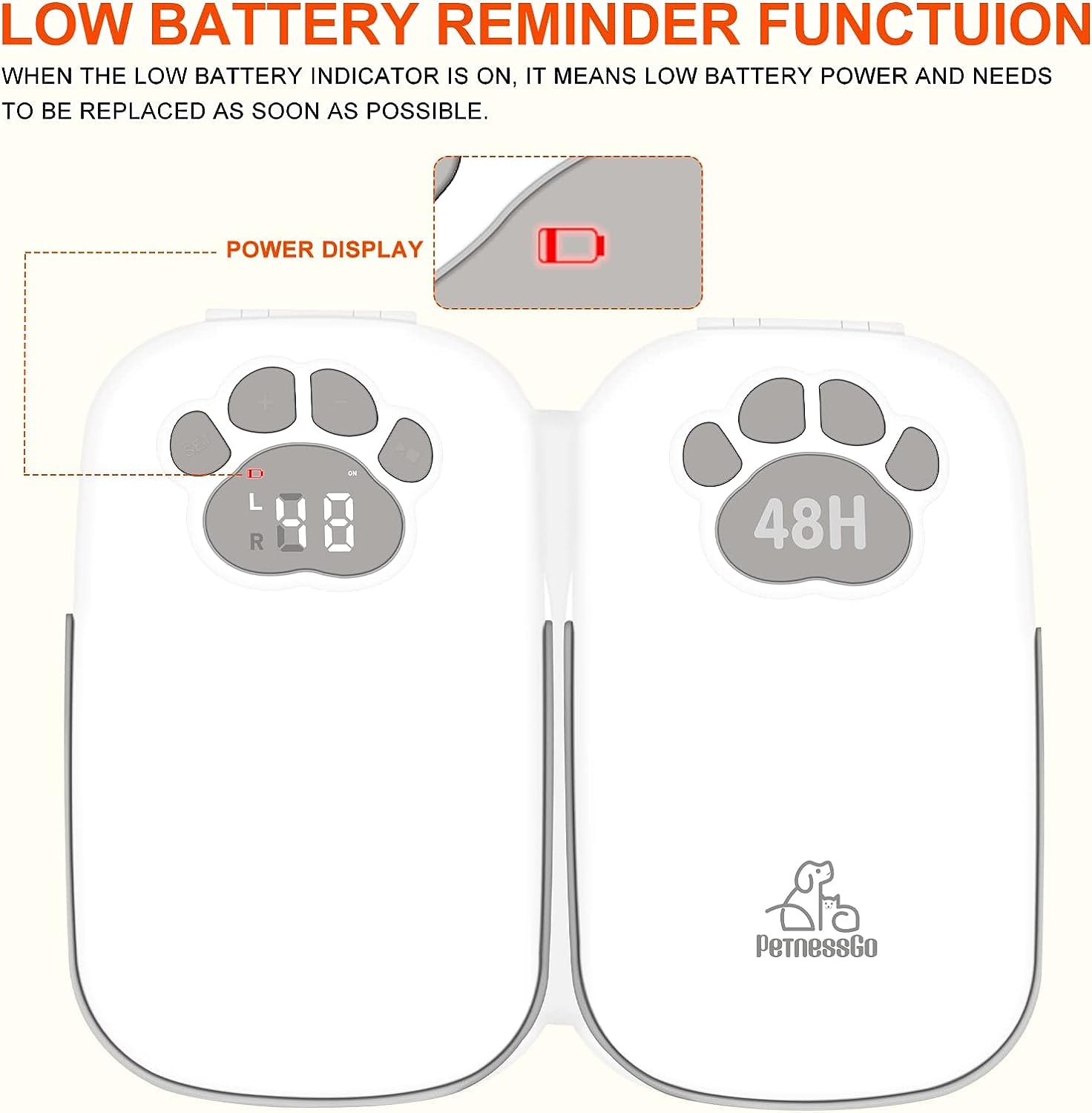 Meal Planning and LCD Display: Use the timer to plan 2 meals for your pet. It supports timed operation from 1 to 48 hours. You can organize meals for your pet when you are busy or traveling. The LCD display can help you easily set the time for your pets. Requires 4 AA batteries (not included).