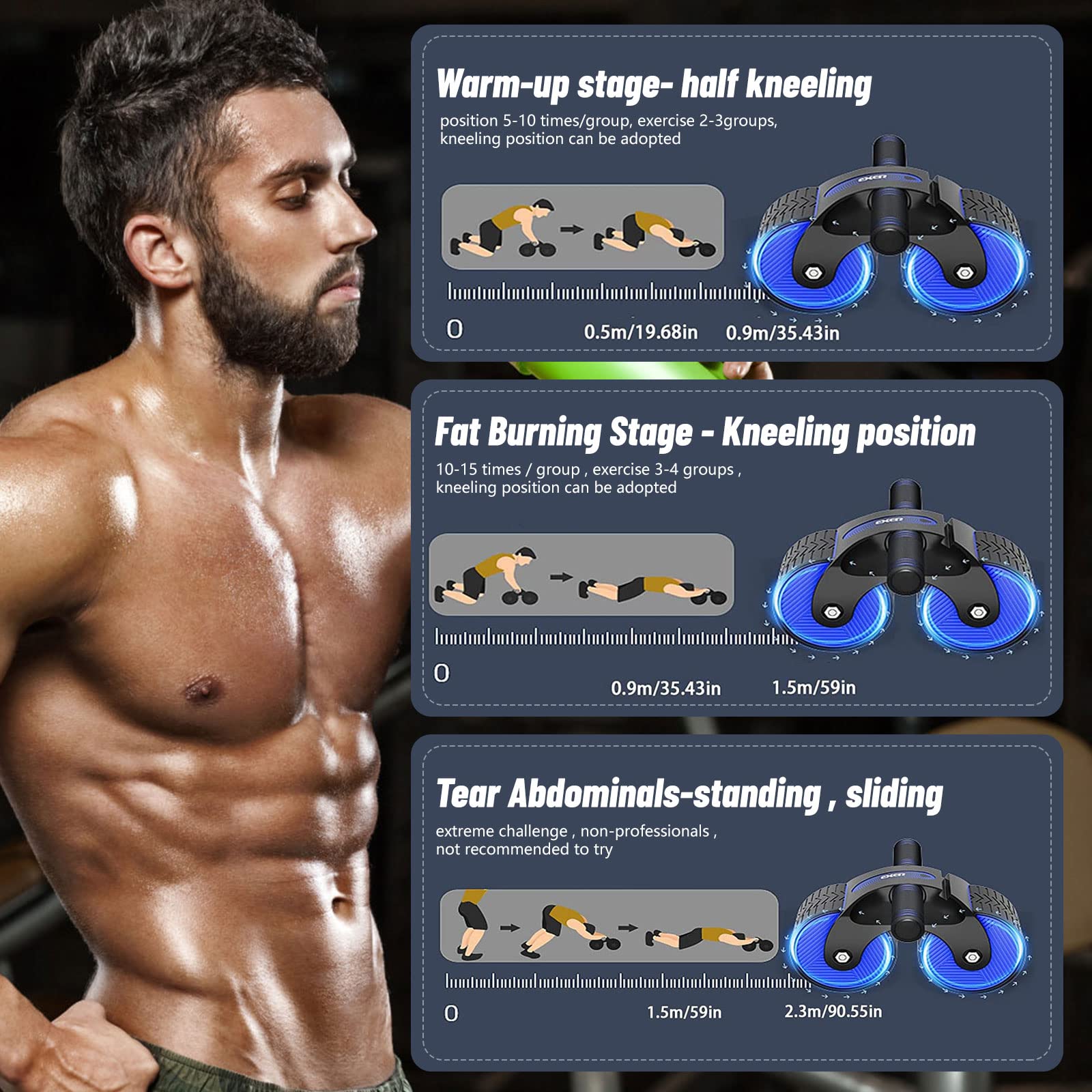 ["【Strength and Core Training】The Ab Roller can be used to crush fat and help you get in shape. It is equipped with a smooth auto-rebound technology that reduces wheel wobbling and helps you control your movements. It can help stretch and tone your abdomen, arms, chest, shoulders, and back muscles, achieve a six-pack, and build core strength.","【Mobile Phone Holder for More Comfortable Training】The fitness roller comes with a phone holder, allowing you to easily view fitness tutorials or music you need during your workout. The arch structure distributes pressure and the double wheel tank-style design provides more stability than a single wheel design, making it easier to perform long workout routines and reducing the risk of injury.","【Stable and Quiet】The multi-layer composite material ensures excellent slip and abrasion resistance without scratching the floor, and the wheels are flexible and quiet. It has a stable triangular structure and a comfortable non-slip grip.","【Non-Slip Knee Pad】A high-quality non-slip knee pad is included to meet your needs and help you train better without fear of injury, protecting your knees!","【Great Gift Idea】The Ab Wheel is a great device for toning your muscles and makes a great birthday, holiday, or anniversary gift. Perfect for home, gym, or office!"]