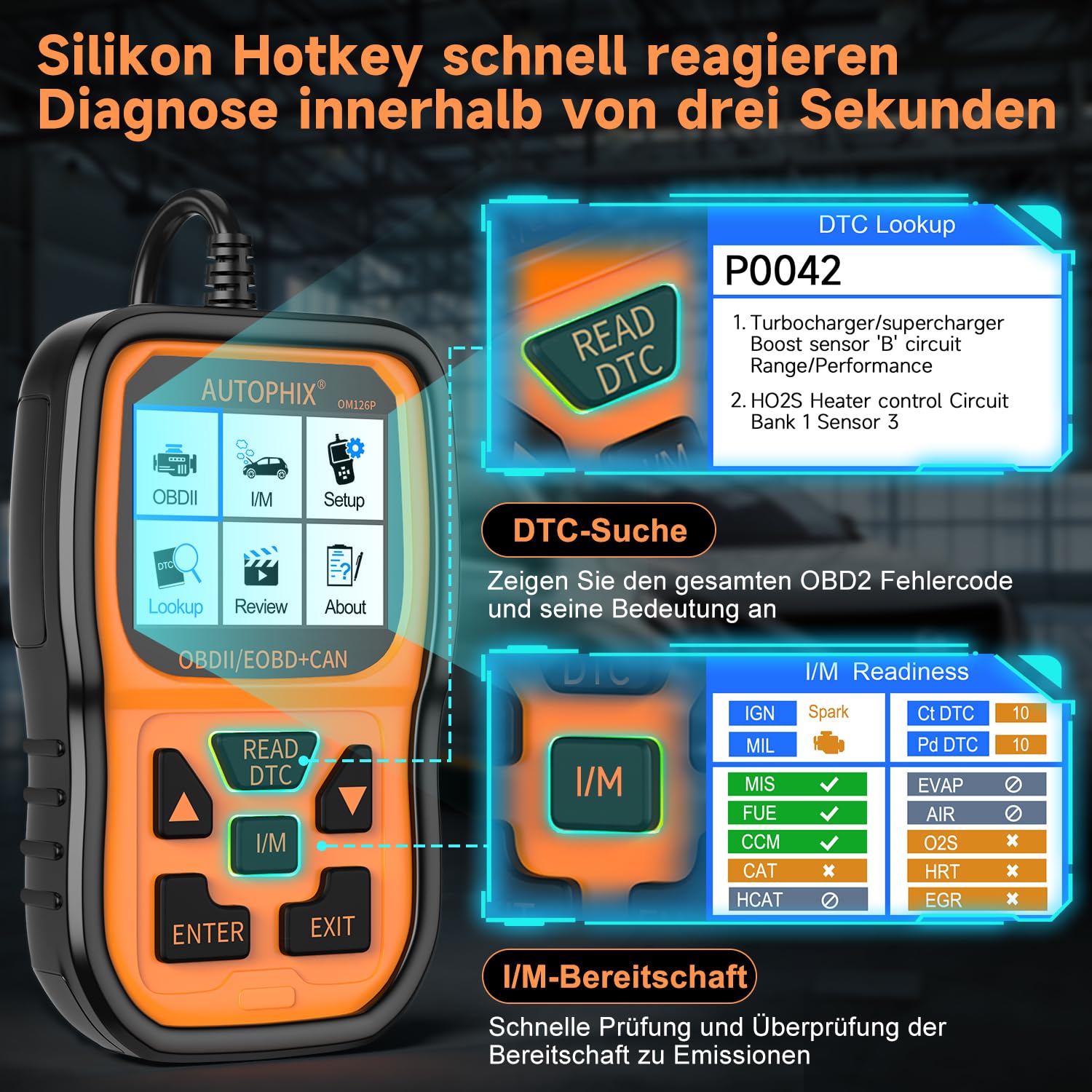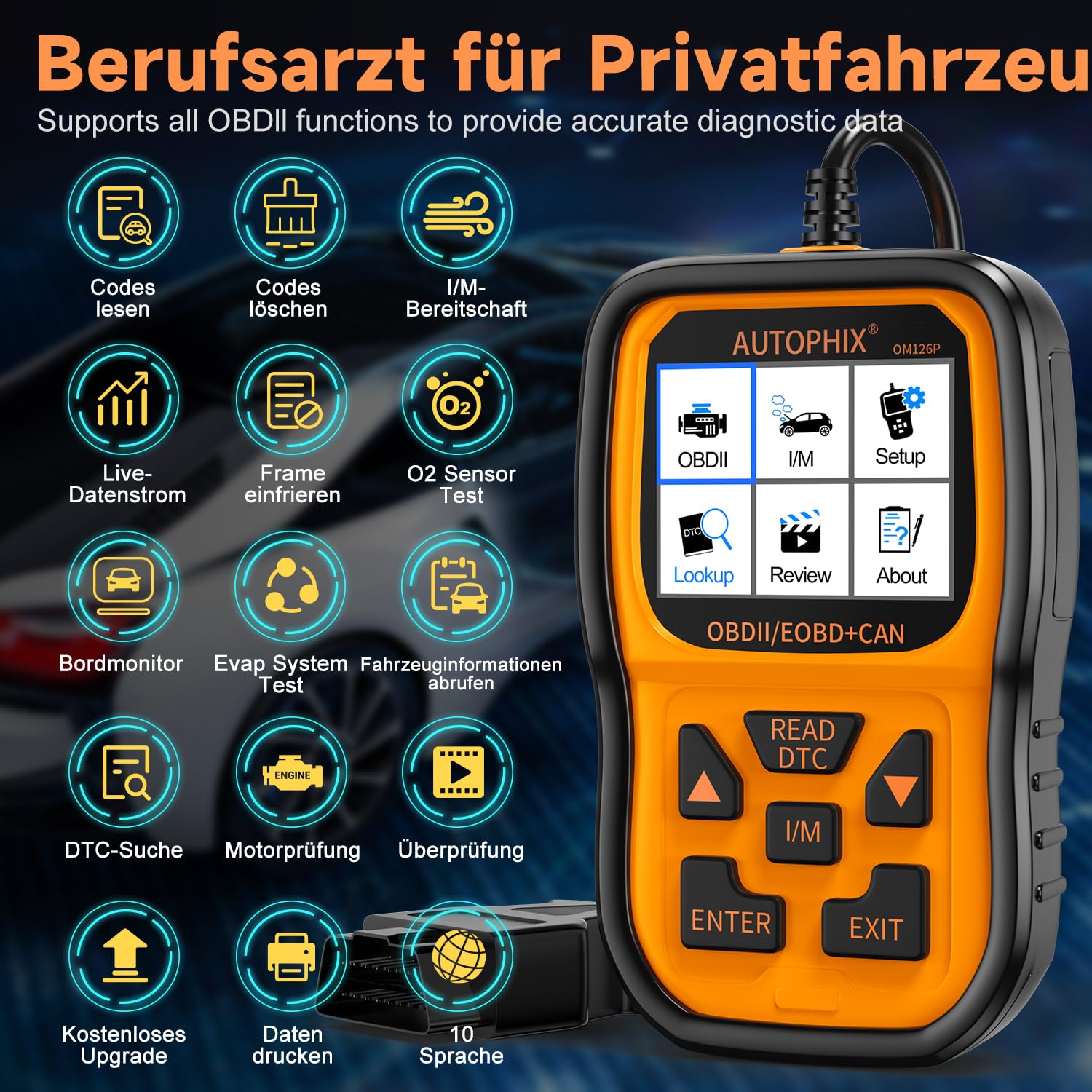 AUTOPHIX OM126P OBD2 diagnostic tool universal car fault code reader car diagnostic tool for all vehicles car scanner for OBDII protocol German
