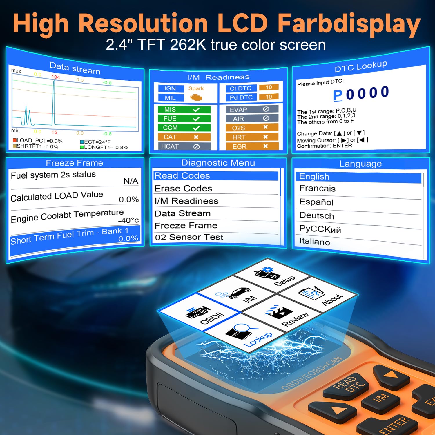 ["🚘126P universal car fault code reader Compatible with BMW/ Ford/ Mercedes-Benz/ Audi/ Fiat/ Vauxhall/ Maserati/ Land Rover/ Jaguar/ VW/ Chevrolet/ Buick etc.","🚘 ➤【POWERFUL FUNCTIONS】 Built-in 14 special functions in one diagnostic tool, read and clear stored codes, pending codes, and display code definitions, data stream, freeze frame, on-board monitoring, and display vehicle information, I/M reading, check recorded DTC, check and print report. Support O2 sensor and EVAP system test, identify troubleshooting related to fuel efficiency and vehicle emissions.","🚖➤【PROFESSIONAL AUTO ENGINE TOOL】 The OM126P Enhanced OBD2 diagnostic tool can read and clear the fault codes that can cause emission issues in your vehicle in seconds, disable the MIL, and reset the monitor, build a DTC lookup library You can find the related code definitions to determine if your car needs to be repaired to save time and money and dramatically improve the lifespan of your car.","🚖➤【PROVIDE COMPREHENSIVE DATA FOR YOU】 The OM126P can comprehensively diagnose data from your car and display graphic data streams: calculated load values, engine coolant temperature, vehicle speed, intake air temperature, airflow sensor, engine speed, etc., OM126P also supports data comparison, allowing you to easily diagnose vehicle conditions and know each parameter of the freeze frame: DTCFRZF, FUELSYSA, ETC, SHRTFT1, LONGFT1, MAP, RPM, VSS, IAT....etc","🚙➤【HD COLOR SCREEN AND EFFICIENT HOTKEYS】 The OM126P car diagnostic tool is equipped with 2.4\" TFT 262K LCD display to show the test results, with the silicone keypad you can easily access the individual menu options, the I/M readiness hotkey can check the emission readiness status and drive cycle verification, also a wealth of car information can be retrieved to find out everything about your car without effort for recording, purchasing matching parts, etc.","🚕➤【STRONG COMPATIBILITY AND MULTIPLE LANGUAGES】 Works on all vehicles after 1996 and newer models in the US (OBD II & CAN) or other imported vehicles. Quickly read and clear DTC on all OBD II protocol vehicles: CAN, J1850 PWM, J1850 VPW, ISO9141 and KWP2000 and support for 10 languages: English, French, Spanish, German, Russian, Italian, Finnish, etc, making it easy to use for people from different countries.","🚗➤【COMFORTABLE ERGONOMIC DESIGN】 Unique black shell handle ensures a firm and secure user experience. The compact design makes it easy to store in your equipment or in a toolbox drawer. Hard rubberized skin gives this scan tool more texture. All these features make AUTOPHIX OM126P stand out among other obd car code readers."]
