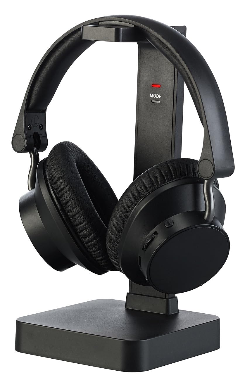 ["Wireless music enjoyment from TV, hi-fi system, and more • Integrated microphone for hands-free calling and hearing amplification • Adjustable sound balance – ideal for seniors and hearing-impaired individuals • Numerous inputs: 3.5mm jack, RCA, Toslink • 2.4 GHz digital wireless transmission: up to 30 meters range • High wearing comfort thanks to padded ear cups","Over-ear headphones with powerful stereo sound and hearing amplifier • * Maximum volume in TV mode: 98 dB • Frequency range: 20 - 20,000 Hz • Signal-to-noise ratio: 83 dB • Easy control on the headphones: power on/off switch for headphones and microphone, volume and balance controls • Audio connections on base station: 3.5mm headphone jack, optical digital input (Toslink), headphones: 3.5mm headphone jack","Transmitter with extra high range: up to 30 meters (direct line of sight) • Adjustable sound balance for right and left: compensates for individual hearing loss • Impedance audio connection: 32 Ohm • Transmission delay (latency): 15 ms • Comfortable to wear: swiveling ear cups with cushions • Power supply headphones: integrated 400 mAh LiPo battery for up to 8 hours of runtime, base station: via USB • Dimensions charging station: 116 x 240 x 116 mm","Integrated hearing amplifier: microphone amplifies voices and sounds by up to 29 dB if desired • 3 sound profiles selectable via base station: adjustable for treble, midrange, and bass • Headphone sensitivity: 98 dB, microphone: -40 dB (+/- 2dB) • Transmission frequency: 2.4 GHz • Status indication via LED • Headphones charge via base station or directly via USB","Note: This is not a medical product. Hearing amplifiers are not a substitute for full-fledged hearing aids and are not suitable for compensating for impaired hearing function. If you suspect hearing loss, consult an ENT specialist or take a test with a hearing aid acoustician. Please read the enclosed instructions before using the hearing amplifier.. Cordless headphones"]