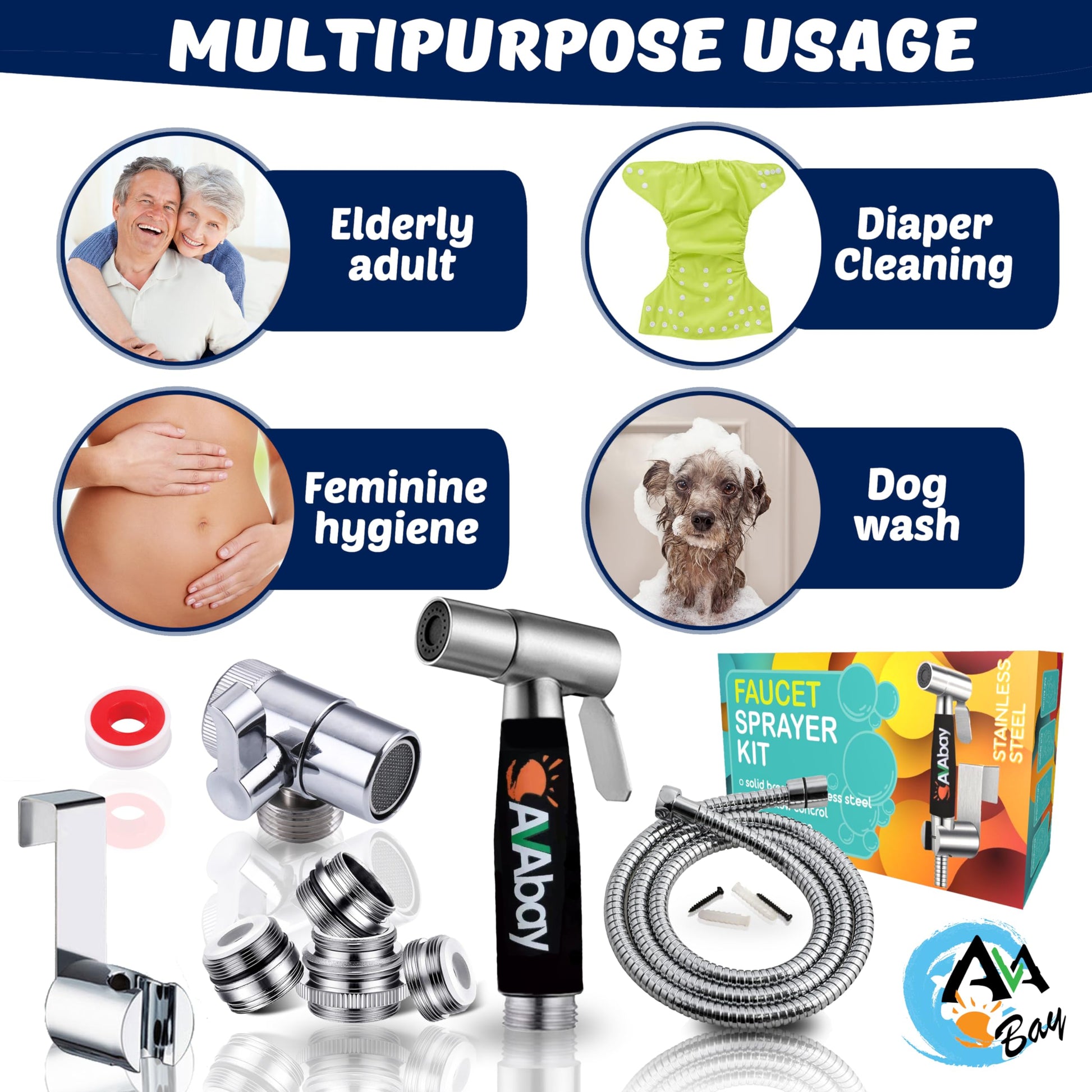 ["Hygiene is our passion. - Have you always wanted to experience the freshness and cleanliness that a hand bidet can offer, but never wanted to spend big money to install one in your home? Well, the AVAbay bidet spray set for faucet allows you to do just that, without the hassle and the price. Our easy attachment can connect directly to your faucet, providing not only a hot/cold or warm bidet, but also a cloth diaper cleaner.",