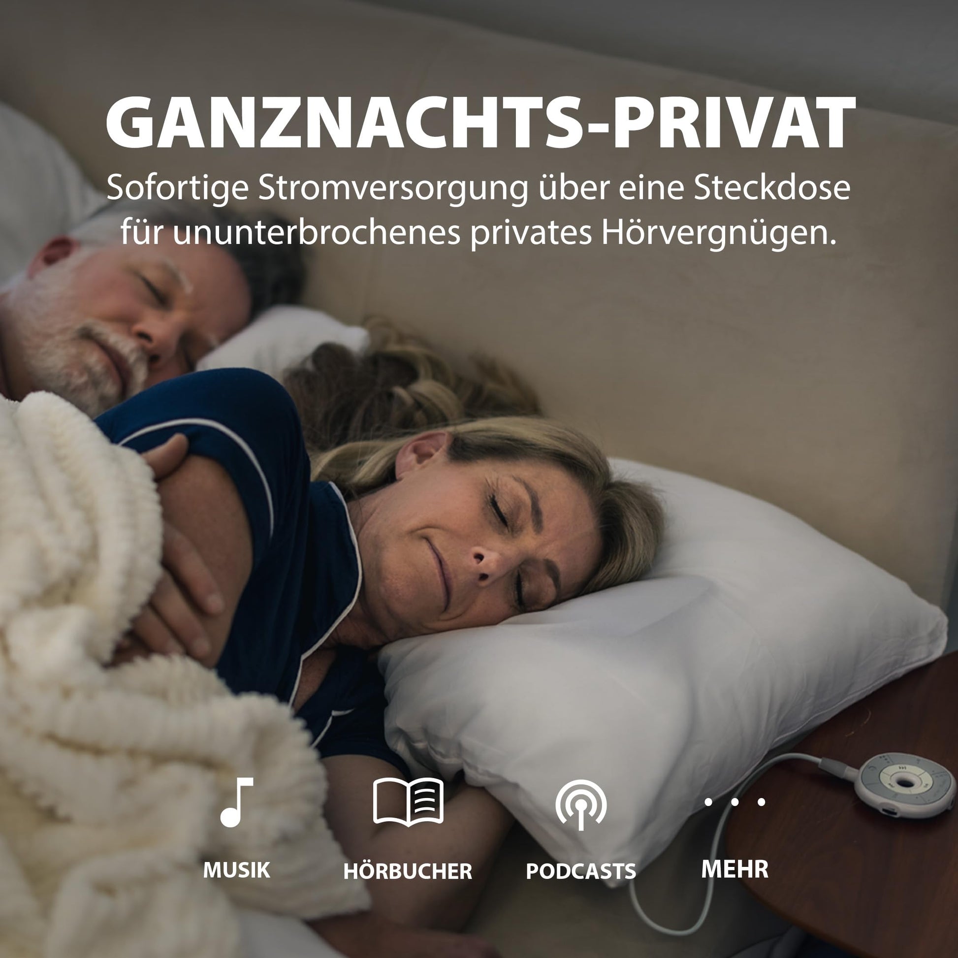 ["Private Sound Comfort] Enjoy your favorite audio content without disturbing your sleeping partner. Easily connect your phone, tablet, or other Bluetooth-enabled device and experience high-quality sound directly from your pillow. Create the ultimate sound oasis in the comfort of your own bed.