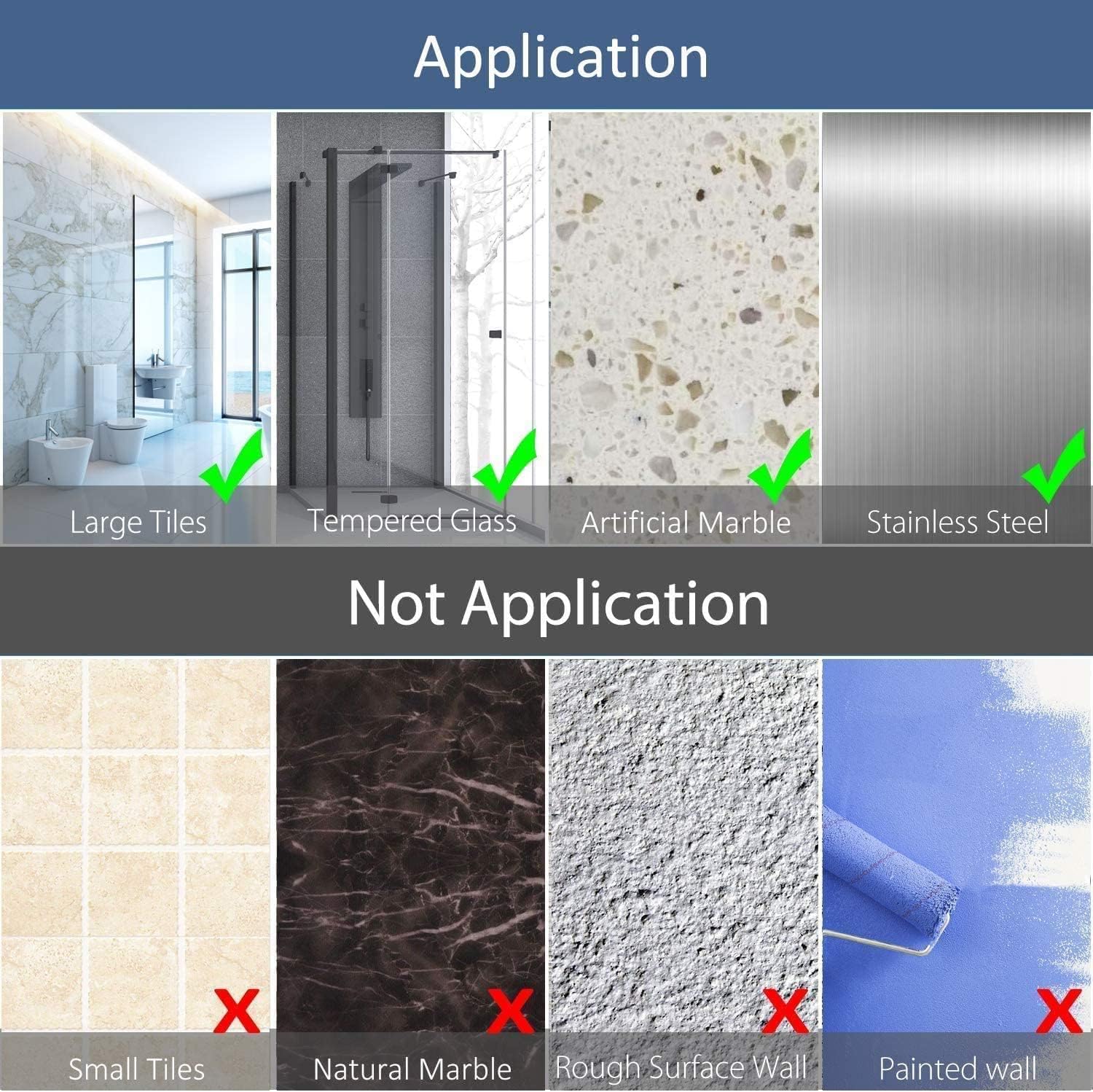 ["π APPLICATION"] Bathroom storage for smooth hard walls such as cement walls, tiles, glass, marble, etc. Please do not use this shower caddy on wallpaper or painted walls. Note: Do not fold the adhesive pads, especially not the part of the buckle that can affect the adsorption effect. We recommend measuring a position and making a mark. Best once the adhesive pads are correctly installed. Then please wait 12 hours and then use.