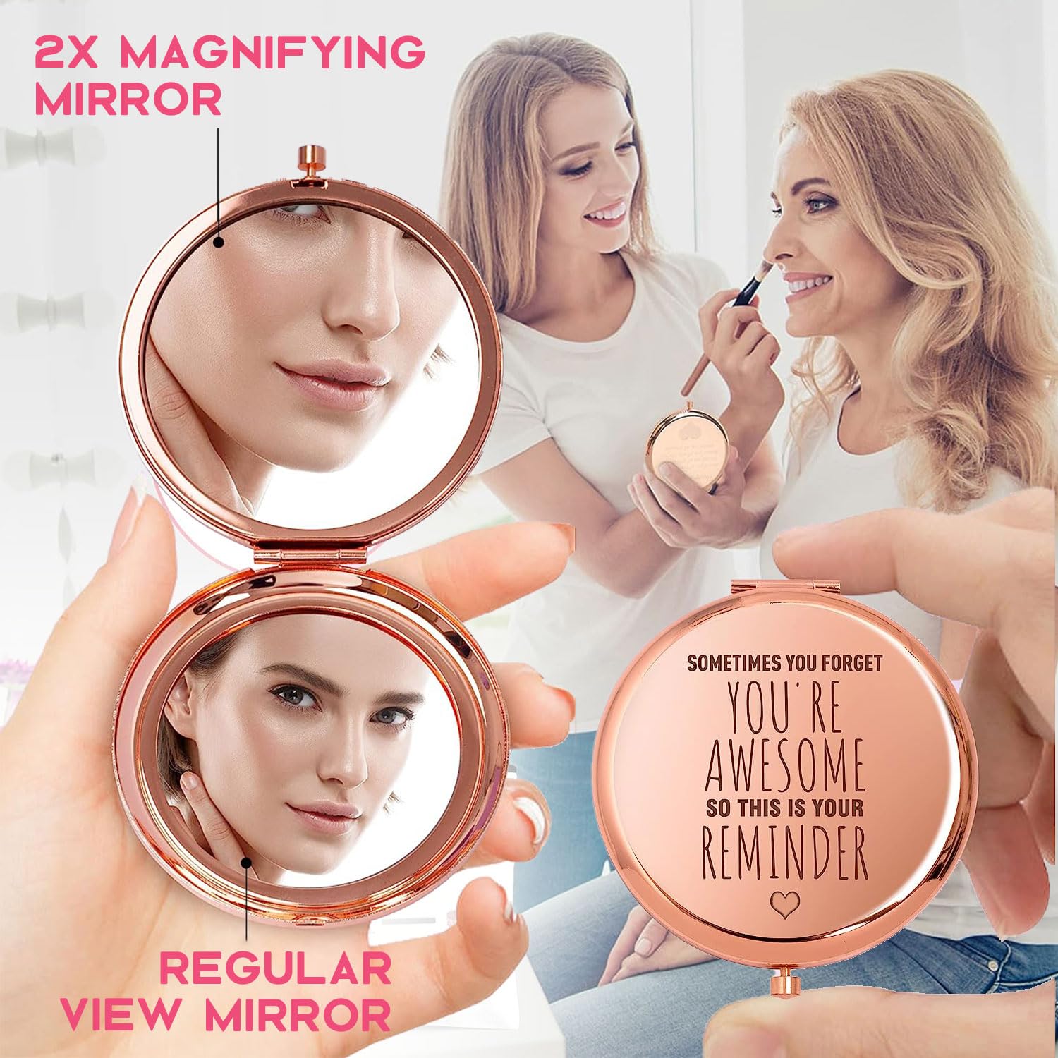 ["The Best Gifts for Her"] Imagine the surprise of receiving this gift on her birthday. She can use the candle to feel smooth and ideal for relaxation, enjoy the happiness of doing makeup with rose gold mirror and makeup bag, and have a morning coffee or afternoon drink with her new favorite wine tumbler. A good day starts with your birthday gift.