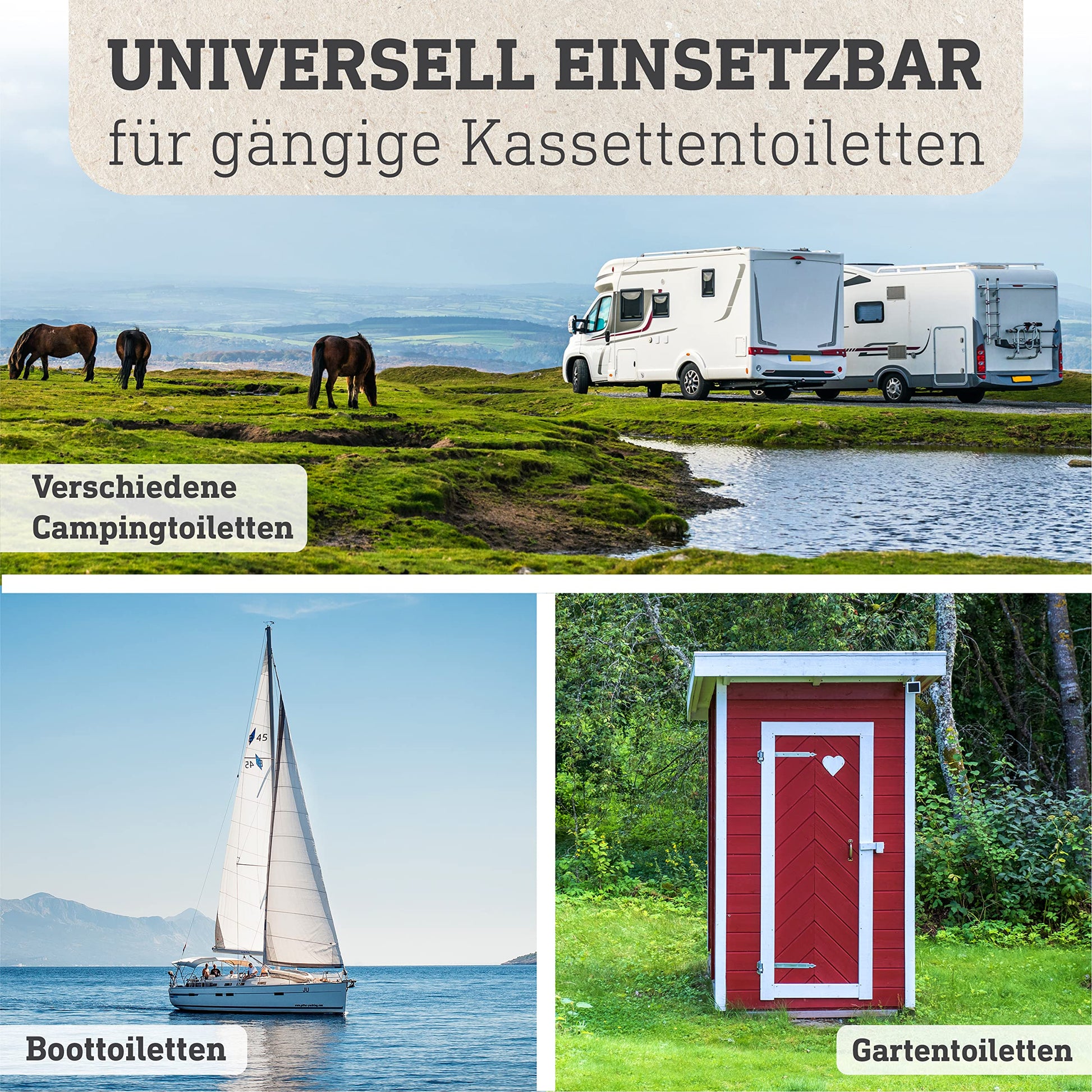 ["✅ VERSATILE: The camping toilet additive is versatile for camping toilets, boat toilets, or garden toilets with a separate flushing water tank and suitable for your vacation & everyday life.",