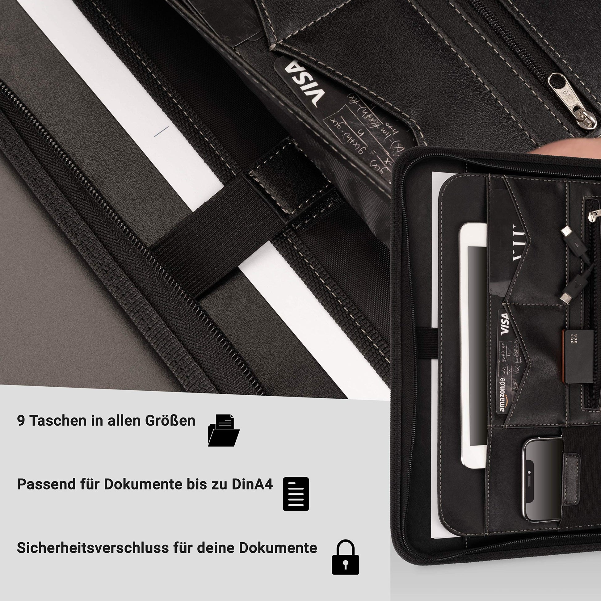 AZORIS PREMIUM® A4 premium folder with double zipper and 13-inch tablet compartment, professional faux leather conference folder for men and women.