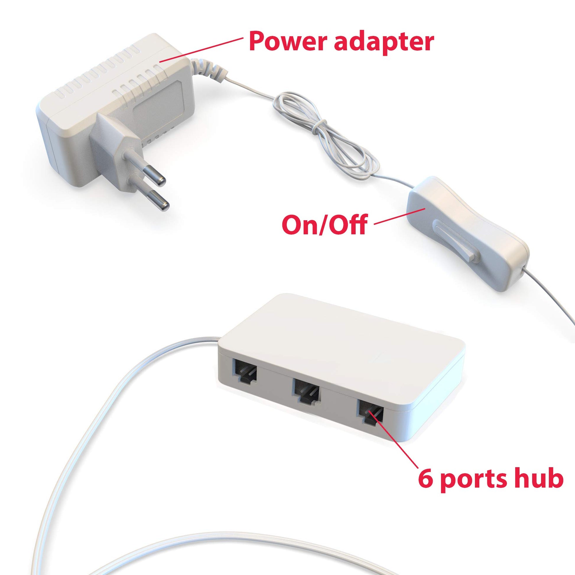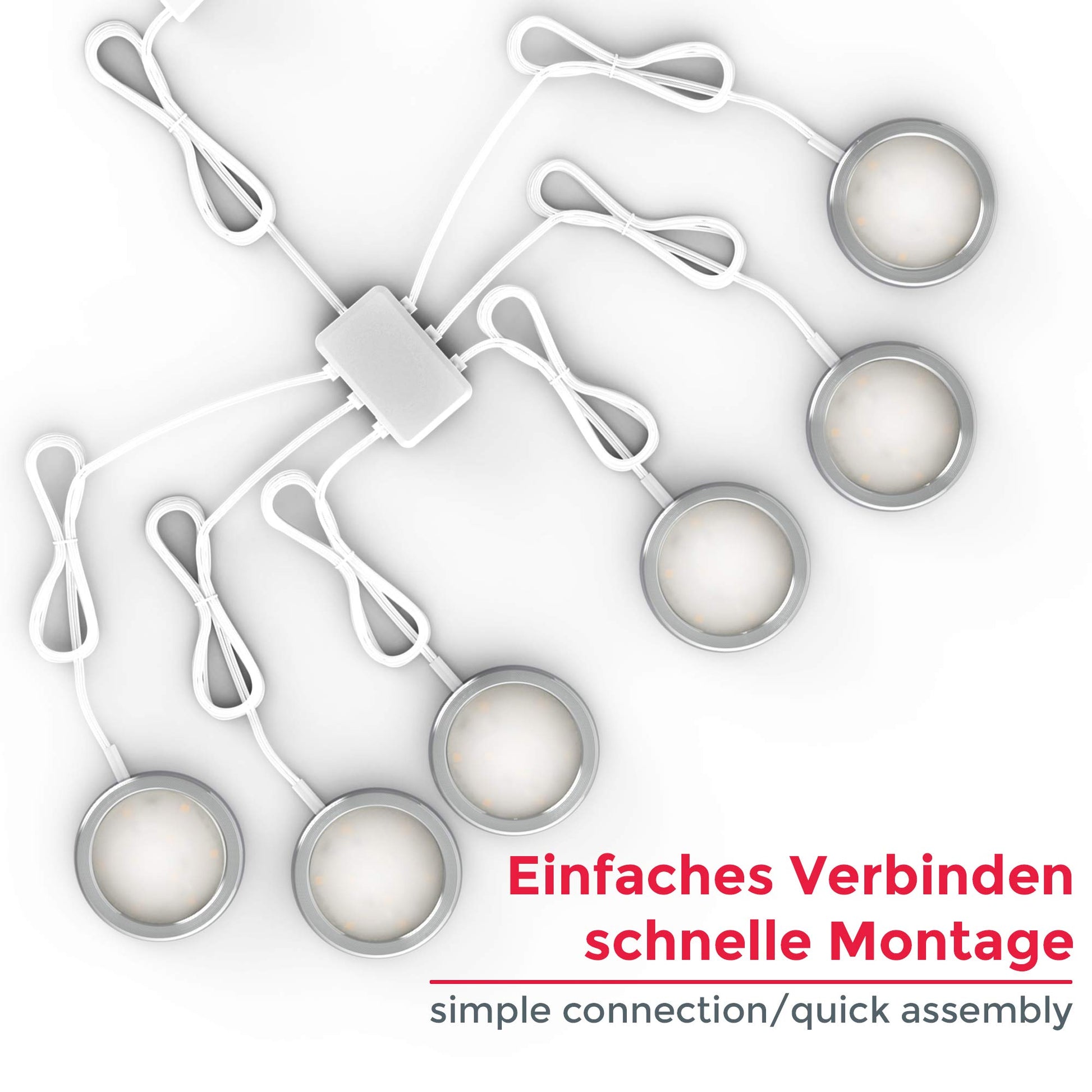 "PRACTICAL SET - Our cabinet under-cabinet lights come with a 1.85m cable, which splits into 6 cables of 1.50m each to the LED light. The lights are 9.5mm high and have a diameter of 59mm"