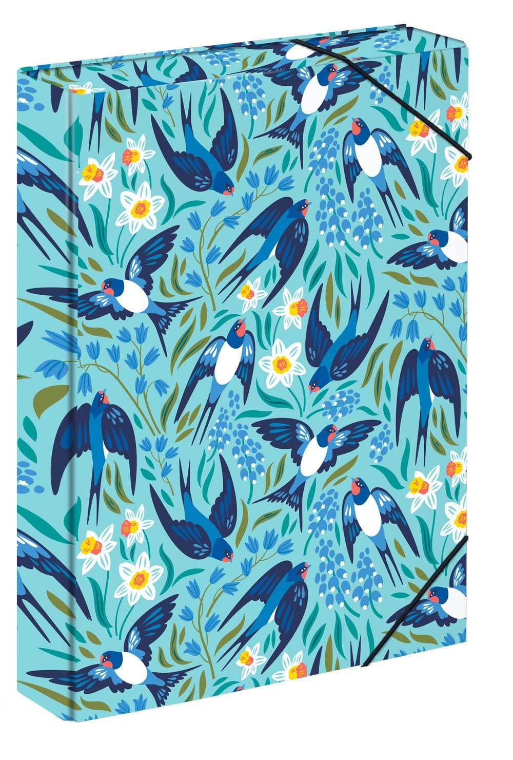 Baagl notebook box for school bag - A4 notebook for children with elastic band and inner flaps - Collector's folder, collector's box with elastic band for boys (swallows)