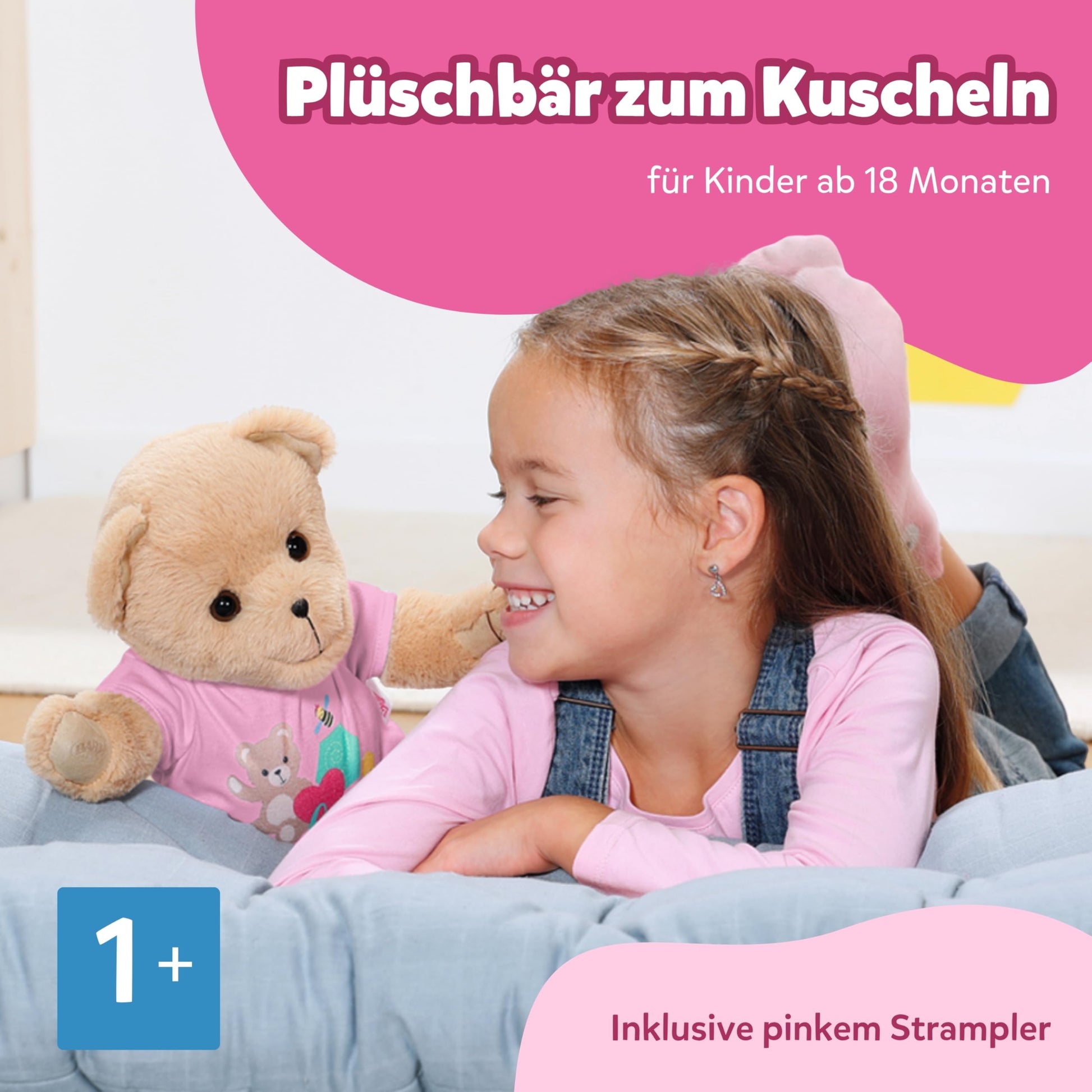 ["CUDDLY PLUSH BEAR - The soft stuffed cuddly bear wears its cute onesie & can wear almost anything from BABY born. He can also use all BABY born accessories!","MOVABLE JOINTS FOR PLAY & CUDDLING - The rotating arms, legs & head make the plush bear perfect for dressing & undressing and playing with BABY born.","FABRIC BEAR WITH BROWN BUTTON EYES - The cuddly teddy bear with lovingly designed button eyes serves as a faithful teddy companion & is easily hand washable.","PLUSH TOY WITH ACCESSORIES - In addition to the pink onesie, a friendship book & a sticker sheet are included in the set.","ECO-FRIENDLY & SUSTAINABLY PACKAGED - The BABY born Bear Teddy comes in plastic-free packaging - sustainable & ready for cuddling.","QUALITY SINCE 1991 - BABY born stands for durable play fun & proven quality that parents have trusted for generations."]