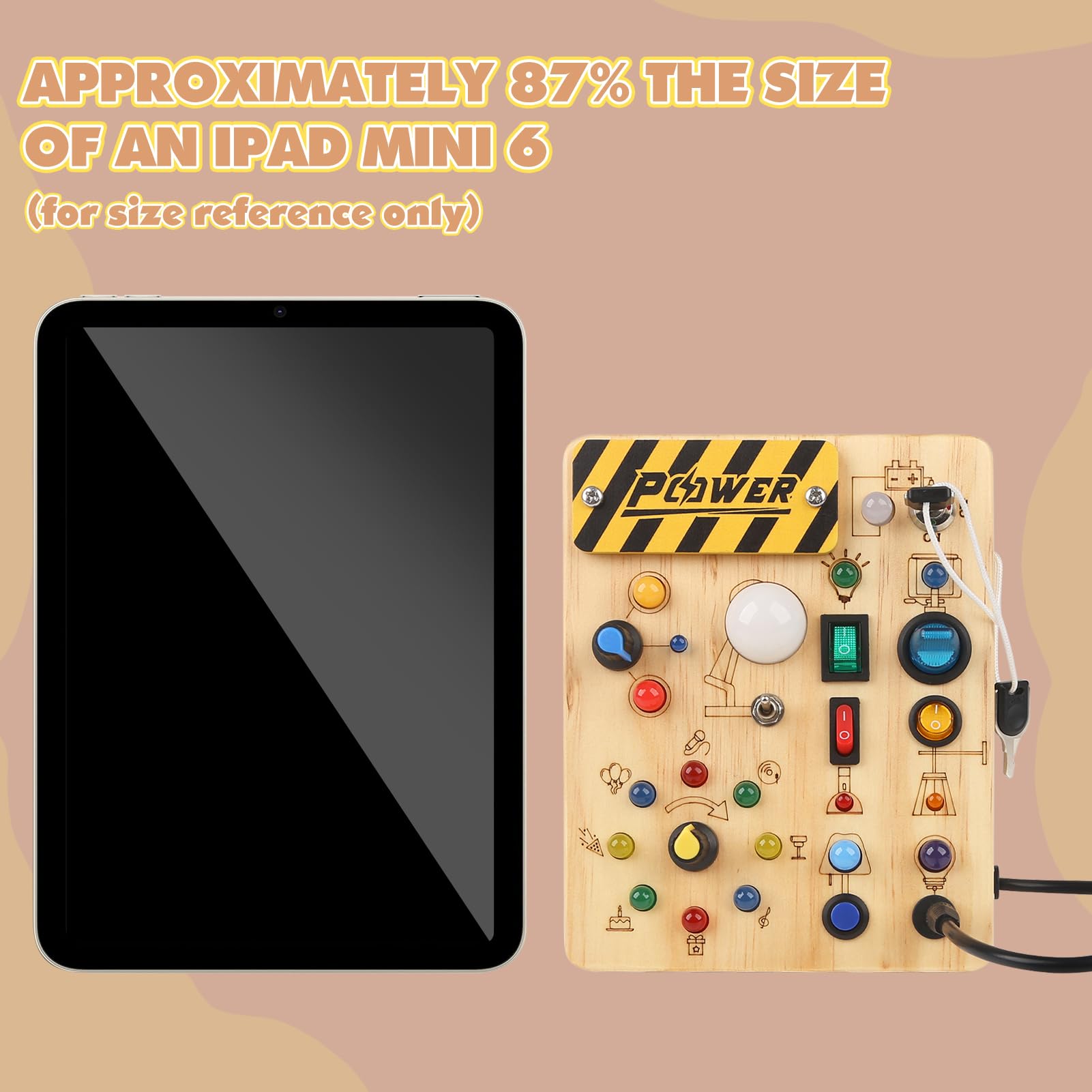 "【High-Quality Sensory Toy】 Our fidget board for toddlers is made of eco-friendly wood. Smooth product edges and all buttons, switches, and levers are securely installed. Busy board is high-quality and very sturdy. You don't have to worry about your baby breaking it, and it is very safe for children. The LED is soft and does not harm children's eyes.",
