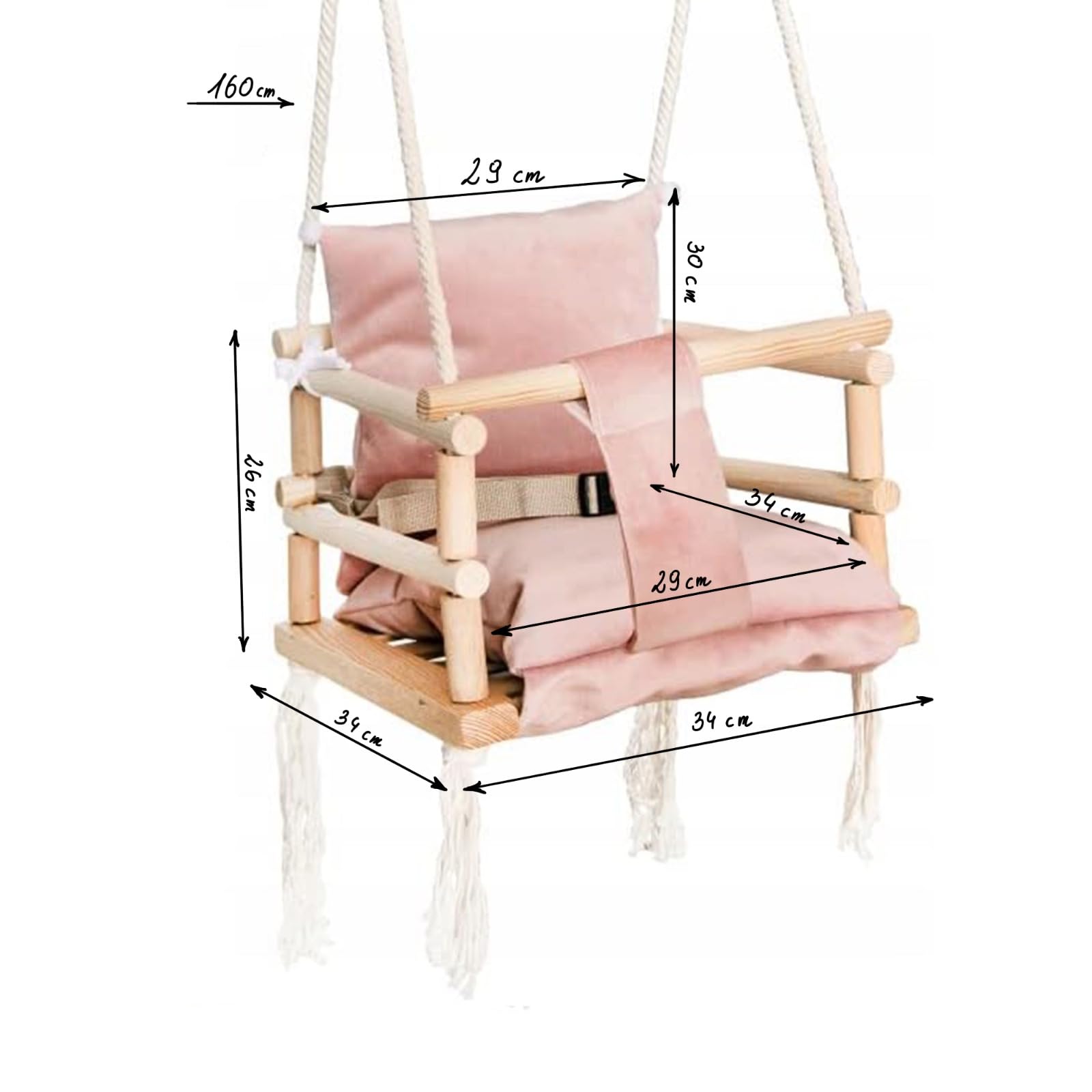 Baby swing children swing wood fabric baby seat baby swing for hanging 3 in 1 (Pink)