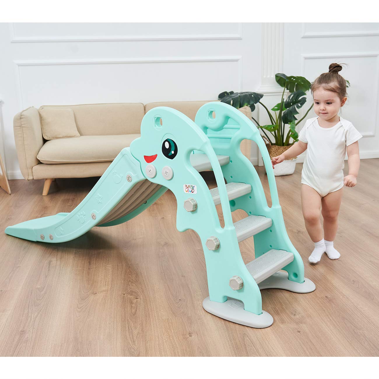 Baby Vivo Kids Slide Children's Slide Garden Slide Toddler Slide Plastic Dolphin rounded corners & edges for Indoor & Outdoor in turquoise