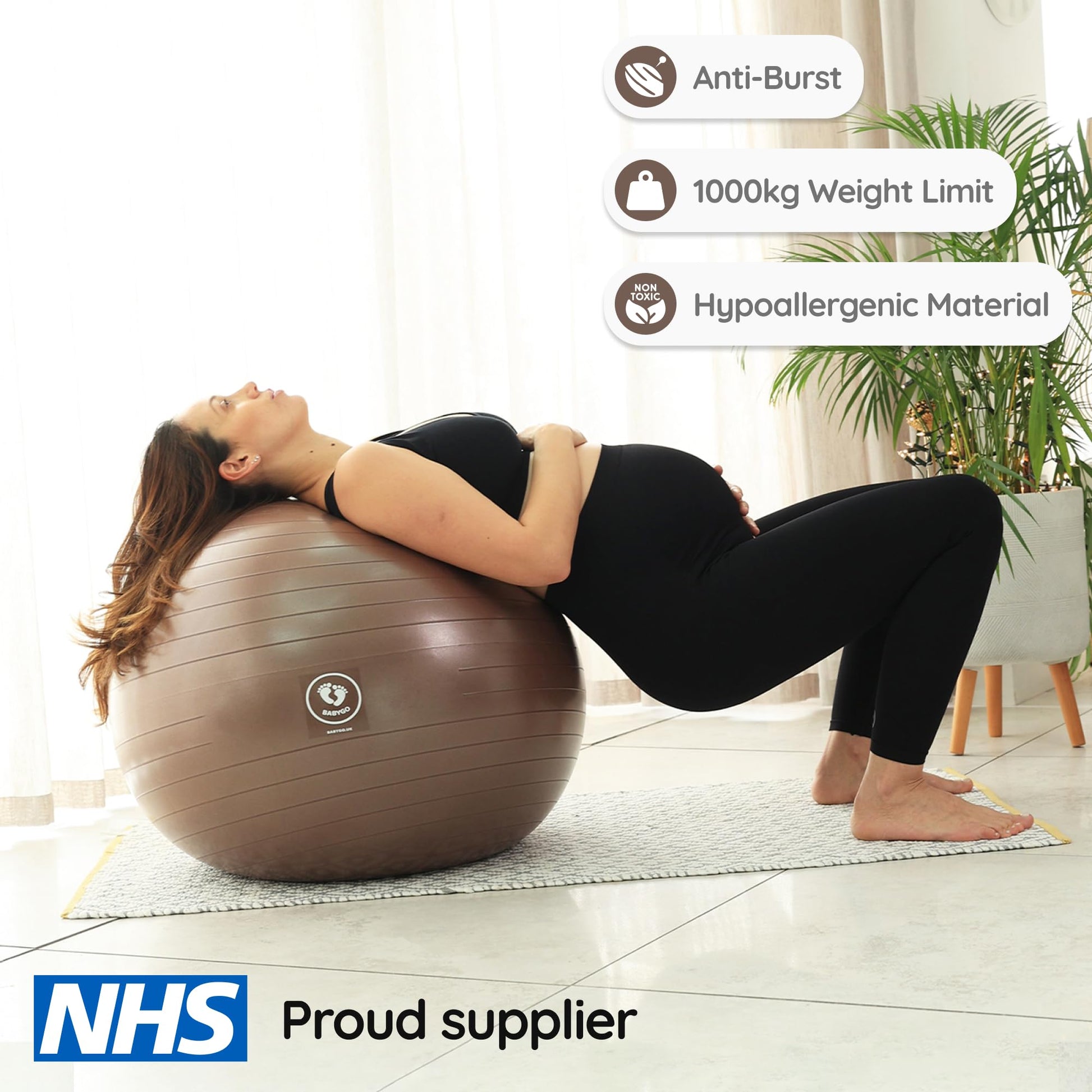 BABYGO® Pregnancy Exercise Ball Office Yoga Pezzi Ball | Includes Pregnancy Book for Birth & Fitness | Anti-Burst 1000 Kg (Mocha, 75cm)