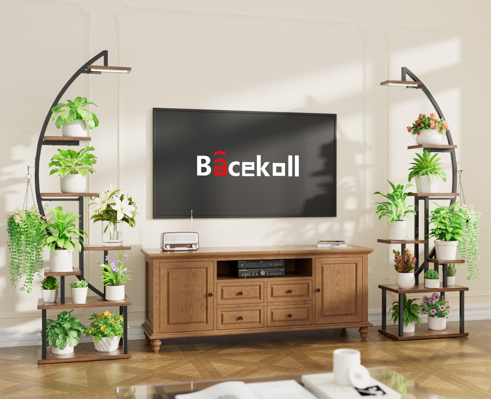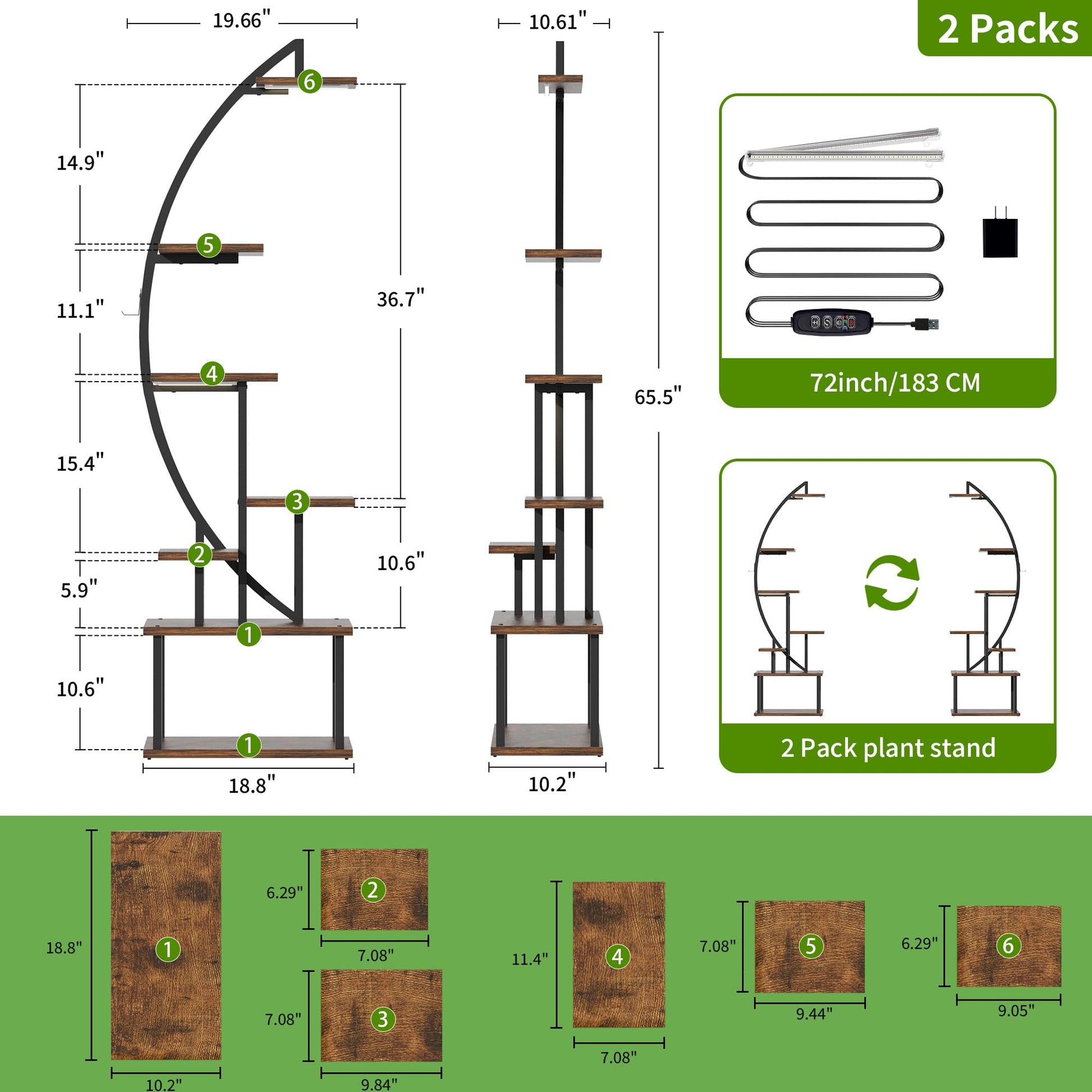 BACEKOLL Plant Stand with Grow Light - 7 Tier Flower Stand 165cm Metal Wood Plant Shelf - Indoor & Outdoor Flower Ladder - Decorative Black Plant Stand for Interior Garden Balcony 2 PACK