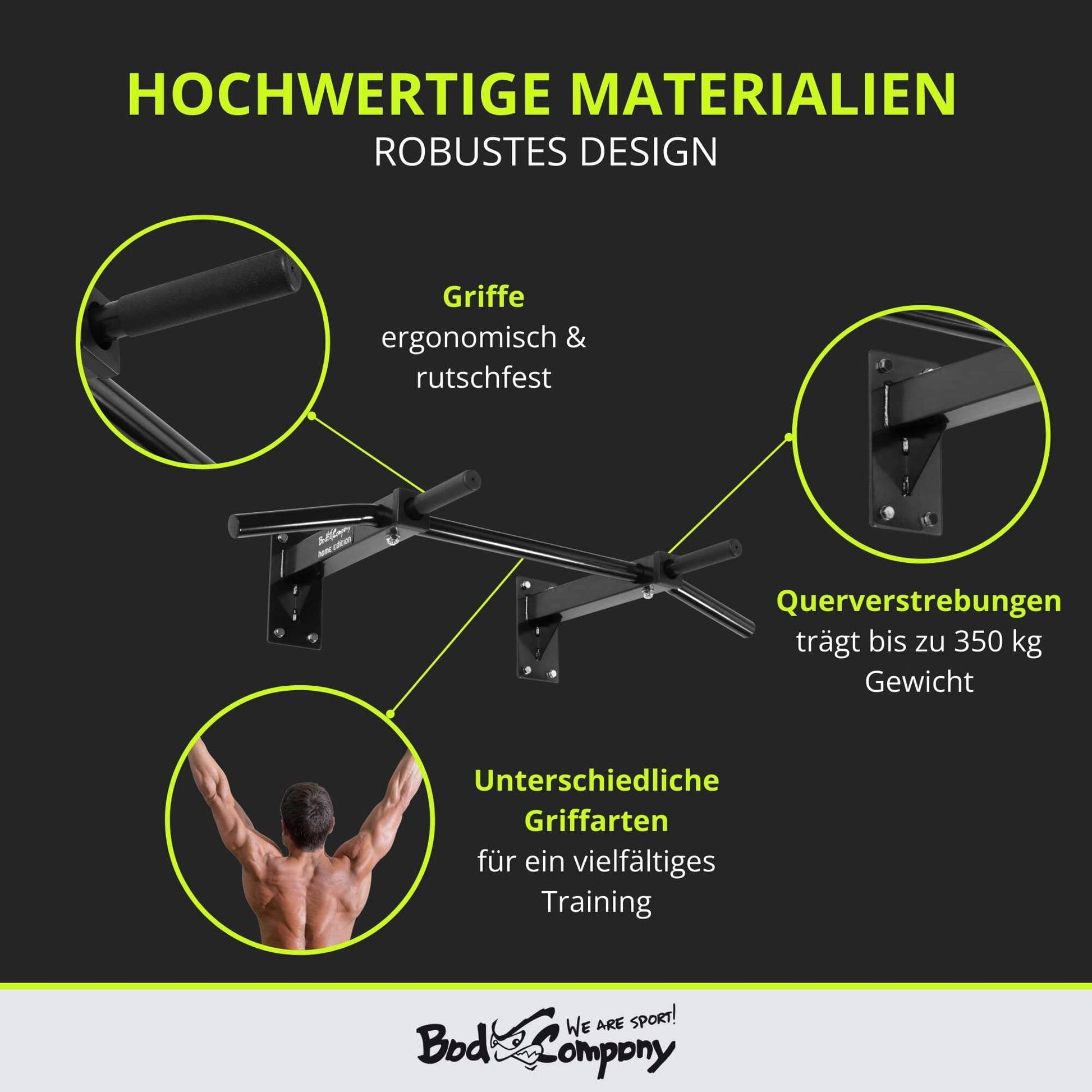 "Extensive training ✓ With the Bad Company pull-up bar for wall mounting, you can effectively and comfortably train your arms, shoulders, abs, and back muscles at home at the same time.