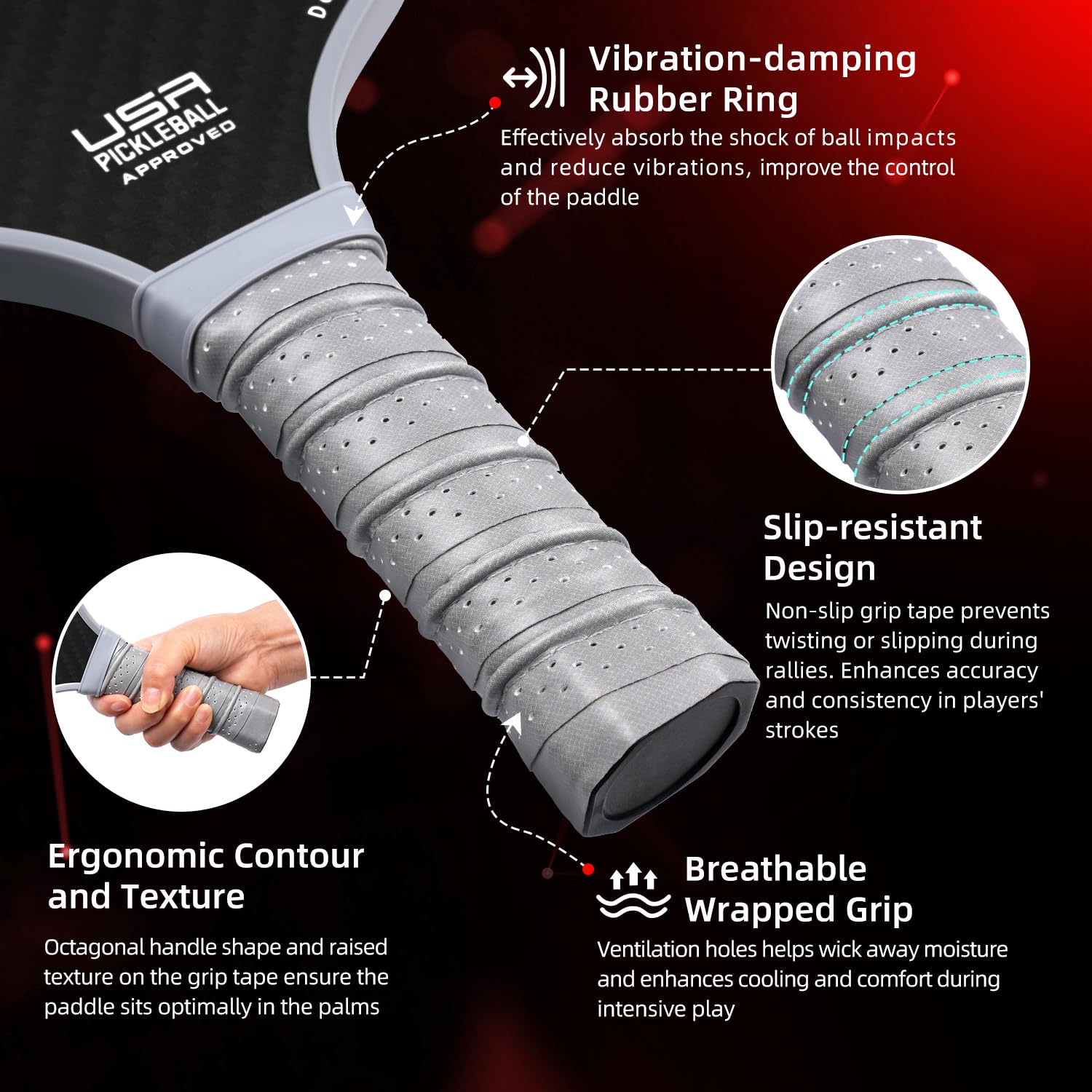 "BAGAIL Pickleball paddles have been approved by the USA Pickleball Association (USAPA) for tournament play, ensuring high safety and professionalism. The protective edge guards reinforce the frame to prevent wear from ground contact or ball impacts, extending the paddles' lifespan."