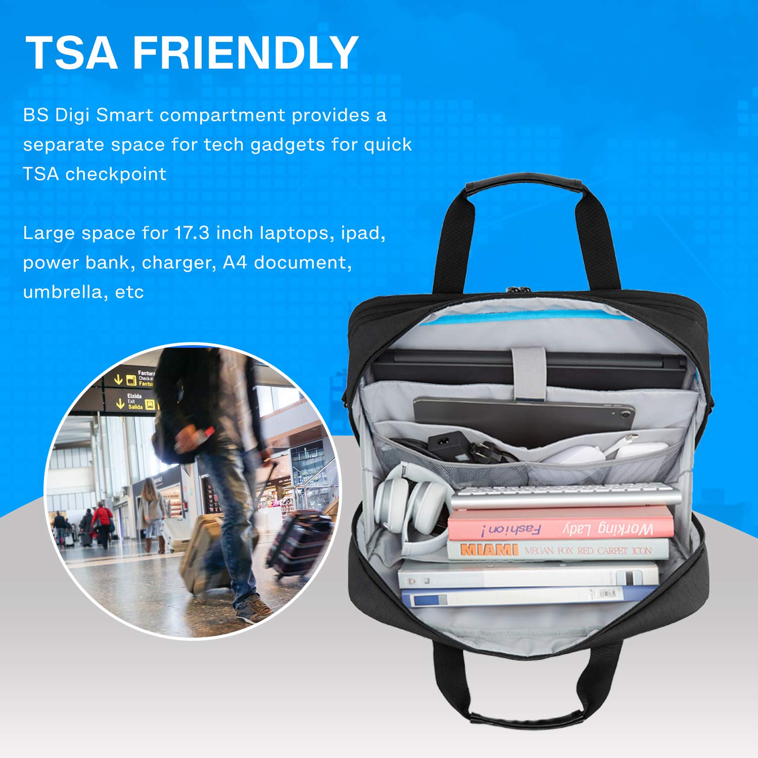 Bagsmart 17.3-inch laptop bag, expandable briefcase, computer bag for men and women, laptop shoulder bag, work bag, business trips, office, lockable (Black-17.3 inches)