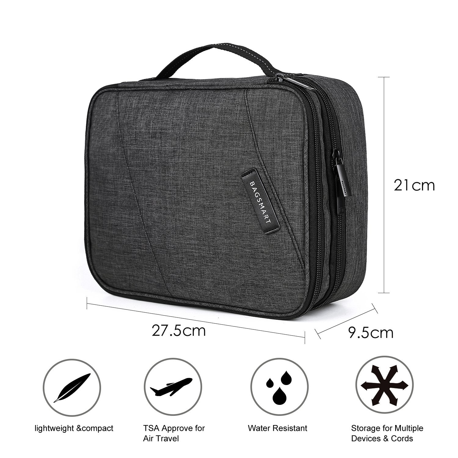 Bagsmart Electronics Bag, Double Layer Electronics Travel Organizer for Cables, Charger, iPad, iPad Air, Tablet up to 10.5 inches, Adapter, Mouse, SD Cards (Anthracite)
