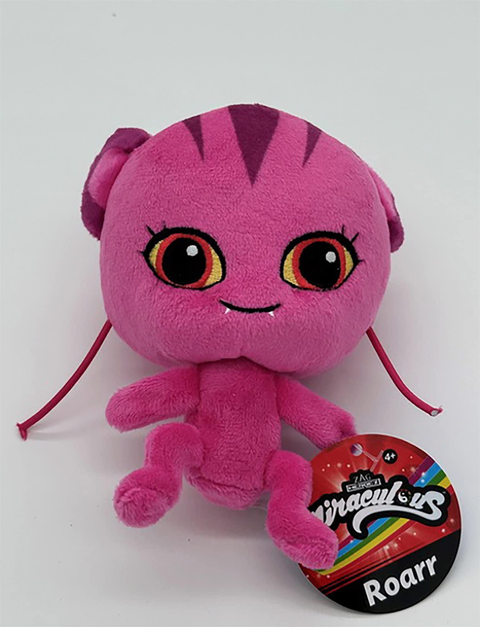 ["This 15 cm Roarr plush toy is a perfect replica of the Kwamis from the Miraculous saga. Roarr is a purple Kwami with round ears and two sharp teeth. The black stripes on his head pay homage to his Miraculous, the Tiger. Each Miraculous plush has its own expression, with attention to detail and soft materials to delight fans. At 15 cm, it's an ideal companion to take on the go or a trendy decoration piece. Includes: 1 15cm Roarr Kwami plush toy, suitable for gifting from 2 years old."]