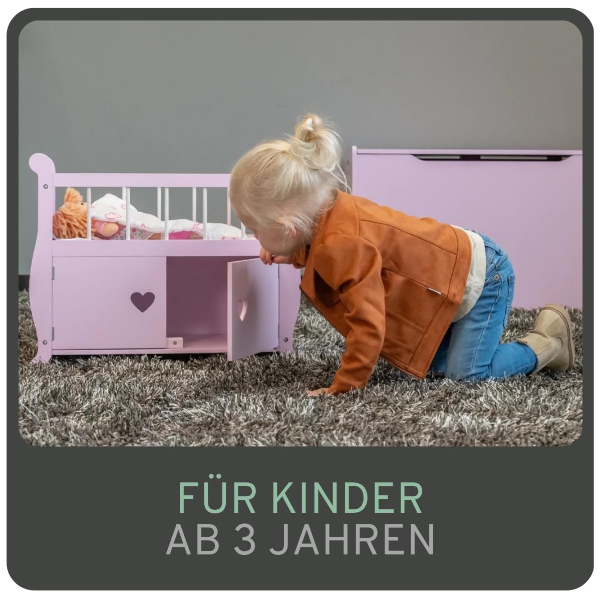 ["TWO-IN-ONE DOLL FURNITURE: Bed and wardrobe for doll clothes.","MADE OF HIGH-QUALITY WOOD: Sturdy, safe, and durable with rounded corners and timeless pink design.","SUITABLE FROM 3 YEARS: Promotes creativity, fun, and teaches children to store their doll clothes.","COMFORTABLE DOLL BED: Suitable for dolls up to 18 inches and equipped with a soft blanket with a lovely print.","EASY ASSEMBLY: Delivered flat-packed with instructions for quick and easy assembly."]
