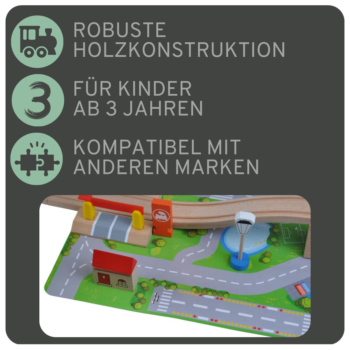 "COMPATIBLE WITH OTHER BRANDS: Like Mentari, Eichhorn, Brio, Woodtoys, and Bigjigs, so you can expand the set for even more adventures."]