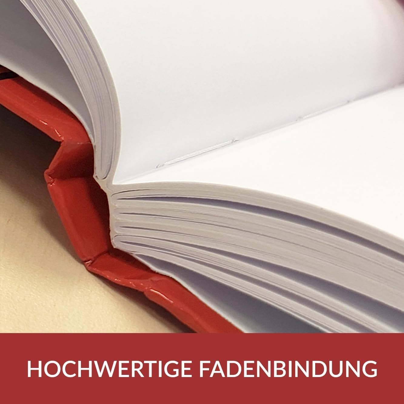 "In these notebooks, all thoughts can be captured and creativity can be unleashed. Contains 96 sheets, which equals 192 writable pages, made of wood- and chlorine-free 70 g/m² paper. The hardcover is splash-proof and wipeable. DIN A4 format, the thread bindings of the bound books are durable and high-quality.