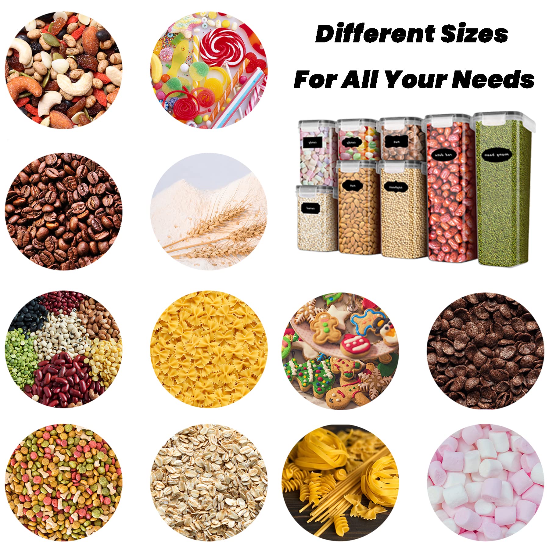 👍【Multifunctional Food Containers】Can be used to store spaghetti, beans, pasta, rice, snacks, nuts, flour, cereal, coffee, and pet food in food jars. Easy to clean, easy to place in cabinets, refrigerators, and other desired locations.