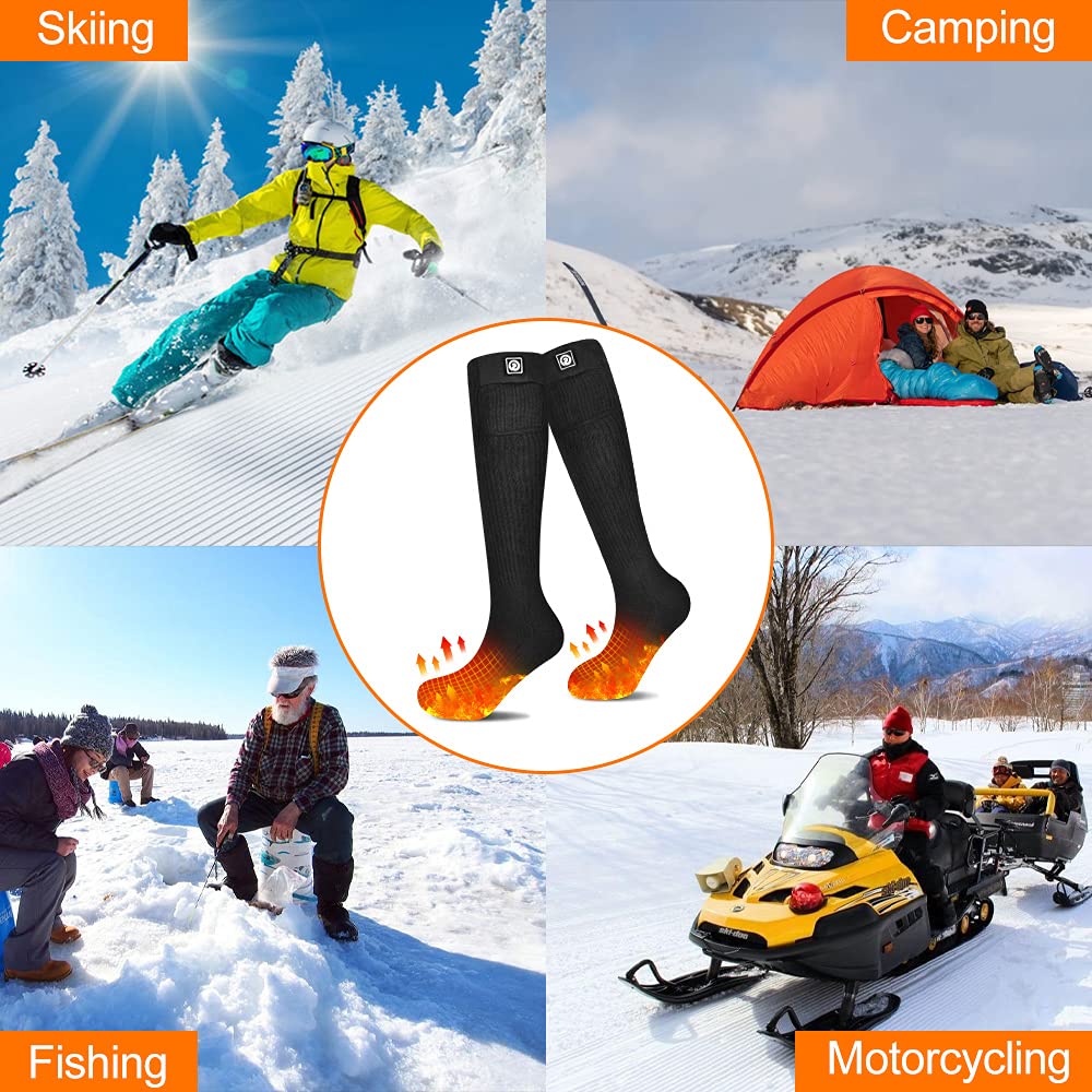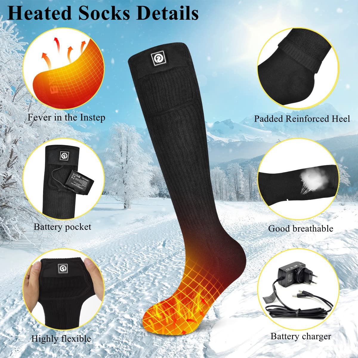 These heated socks are made of comfortable, soft, breathable, elastic, and thickened materials. The heat-generating wires are ergonomically incorporated and precisely sewn in the forefoot, toe, and instep areas, which are prone to cold, to keep your feet comfortable and warm. The hidden elastic ultra-fine wire is used to avoid discomfort and prevent circuit damage from stretching.