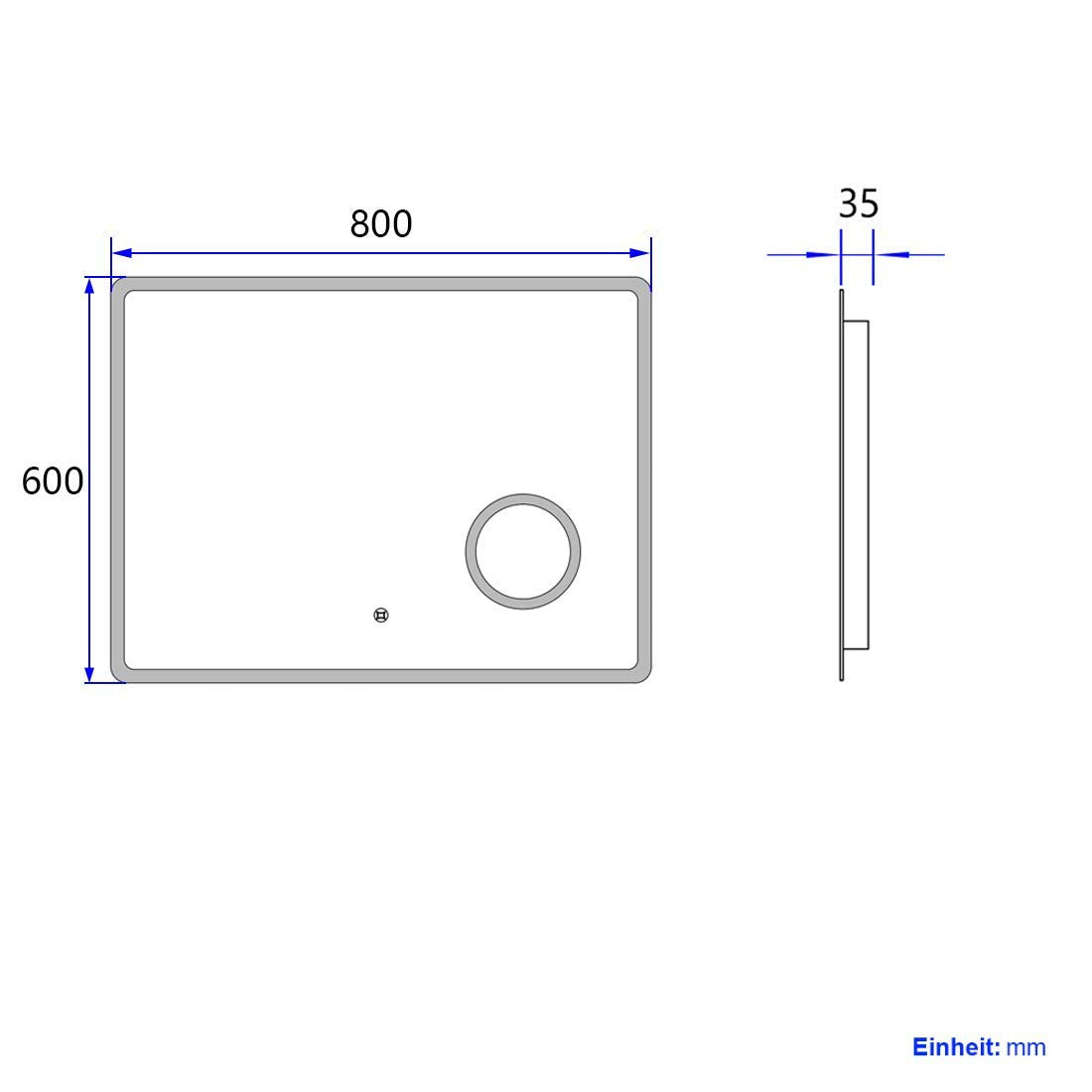 Bathman LED Bathroom Mirror 80x60 cm with Cold White Lighting, Touch Switch, 3x Magnification, Makeup Mirror, Anti-fog, Horizontal Wall Mirror