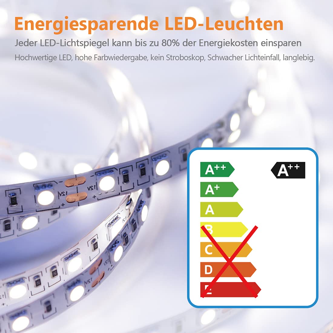 "Modern style: Give your bathroom, dressing room, or any other room in the house a modern touch with the LED bathroom mirror"]