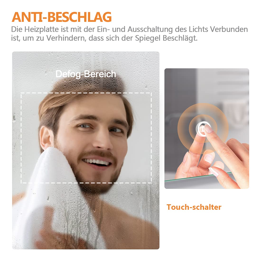 "Anti-fog mirror: The heating plate is connected to the on and off of the light, preventing the central area of the mirror from being covered in fog",