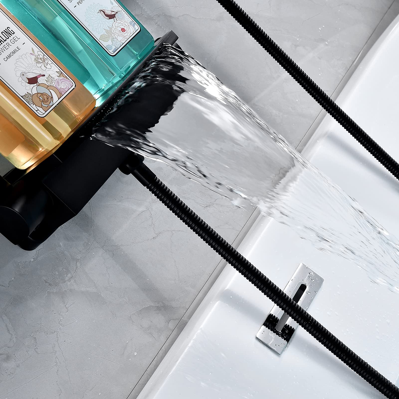 Bathtub faucet waterfall black, bathtub faucet with handheld shower, brass material tub faucet with shower bathtub wall faucet bathtub faucet black matte (black)