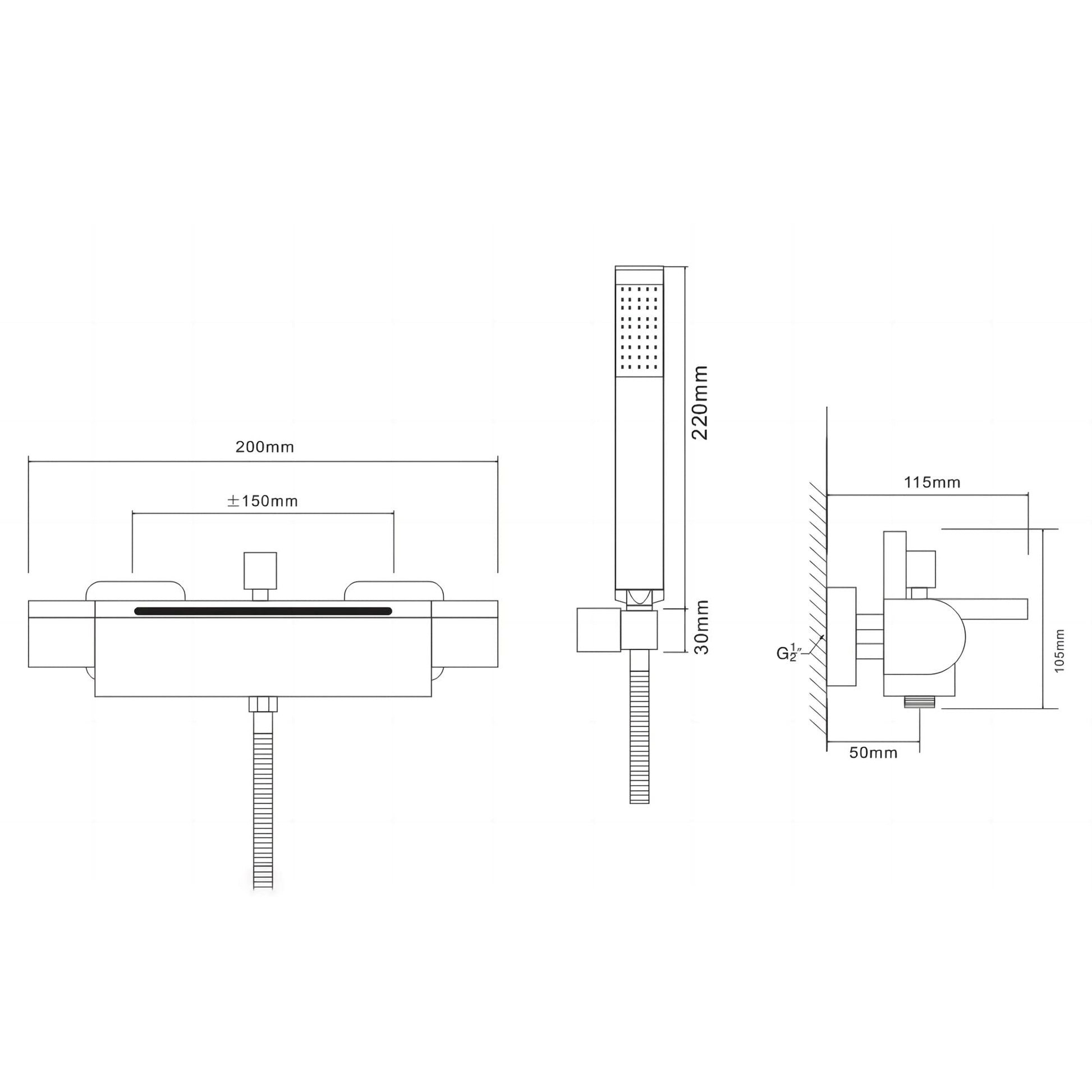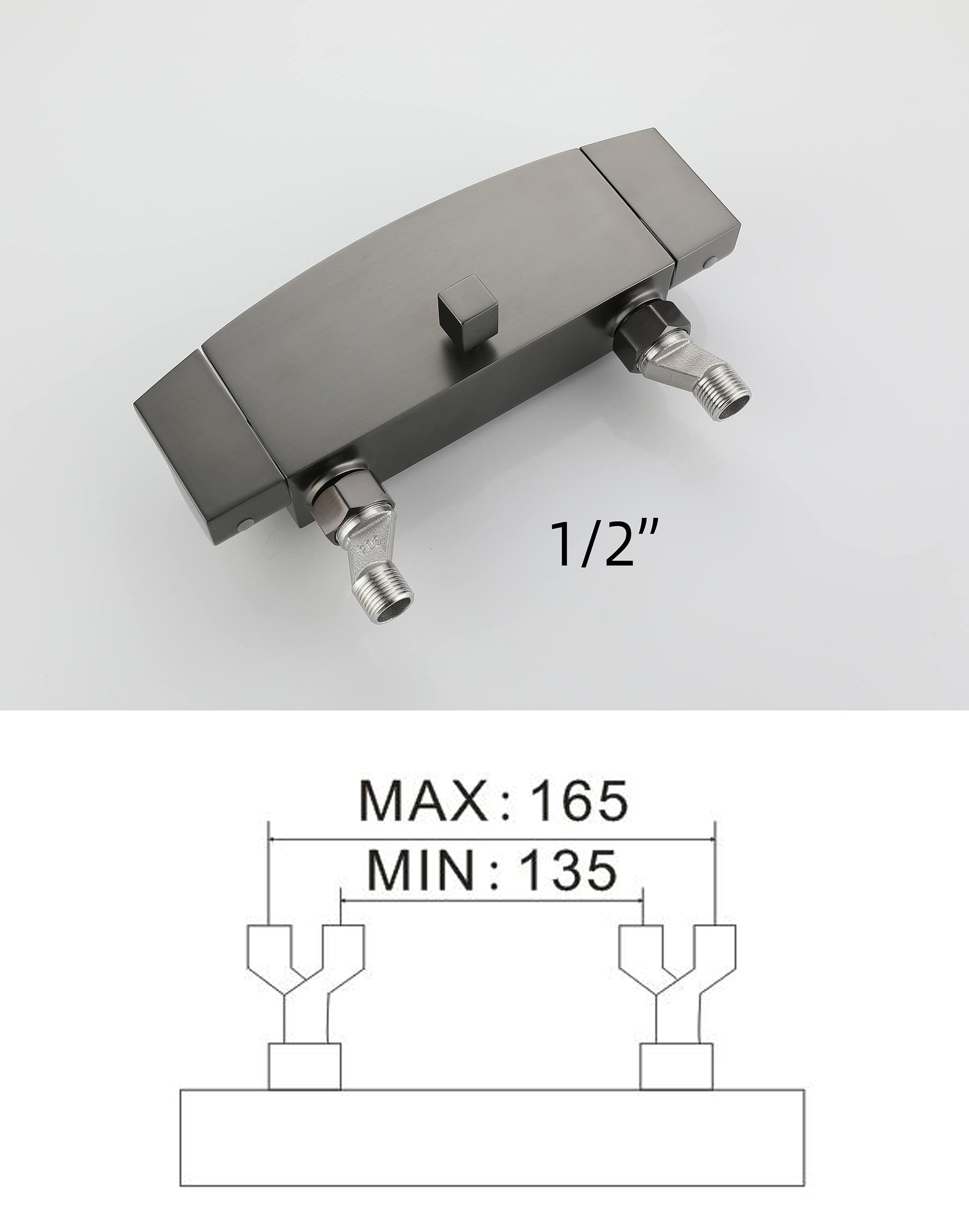 "Wall-mounted, installation width: 5.31 to 6.69 inches, standard G1/2" interface