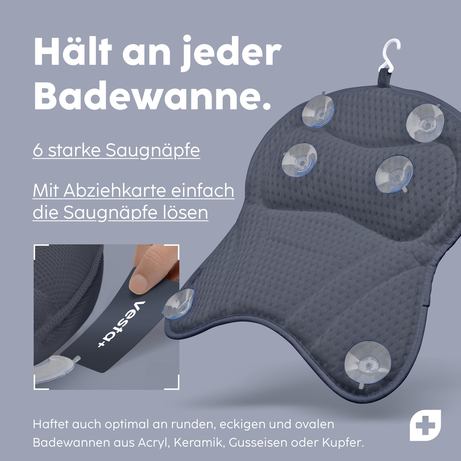 "Best Grip: Your Vesta+ bathtub pillow neck firmly holds with 6 suction cups on all bathtubs. So with our bath pillow for bathtub, you will definitely achieve relaxation with grip."