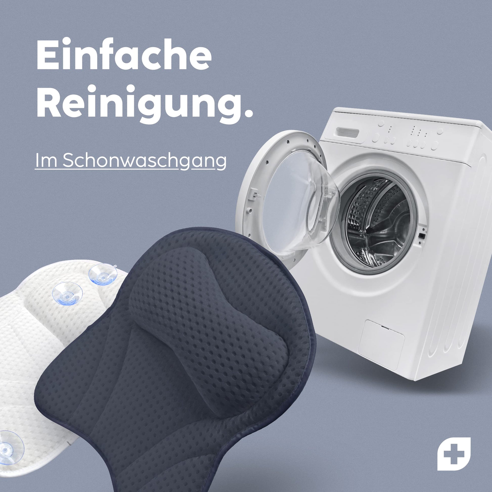"Durable & Washable: Remove the suction cups from the bath head pillow with the removal card after a bath and hang the bathtub cushion head hygienically on the hook of the bathtub head pillow."