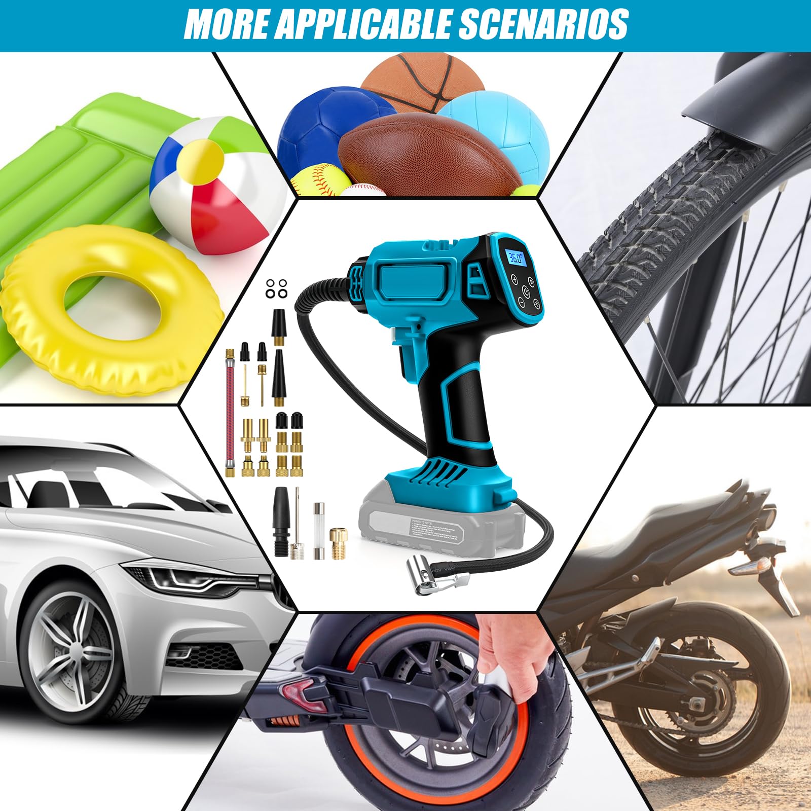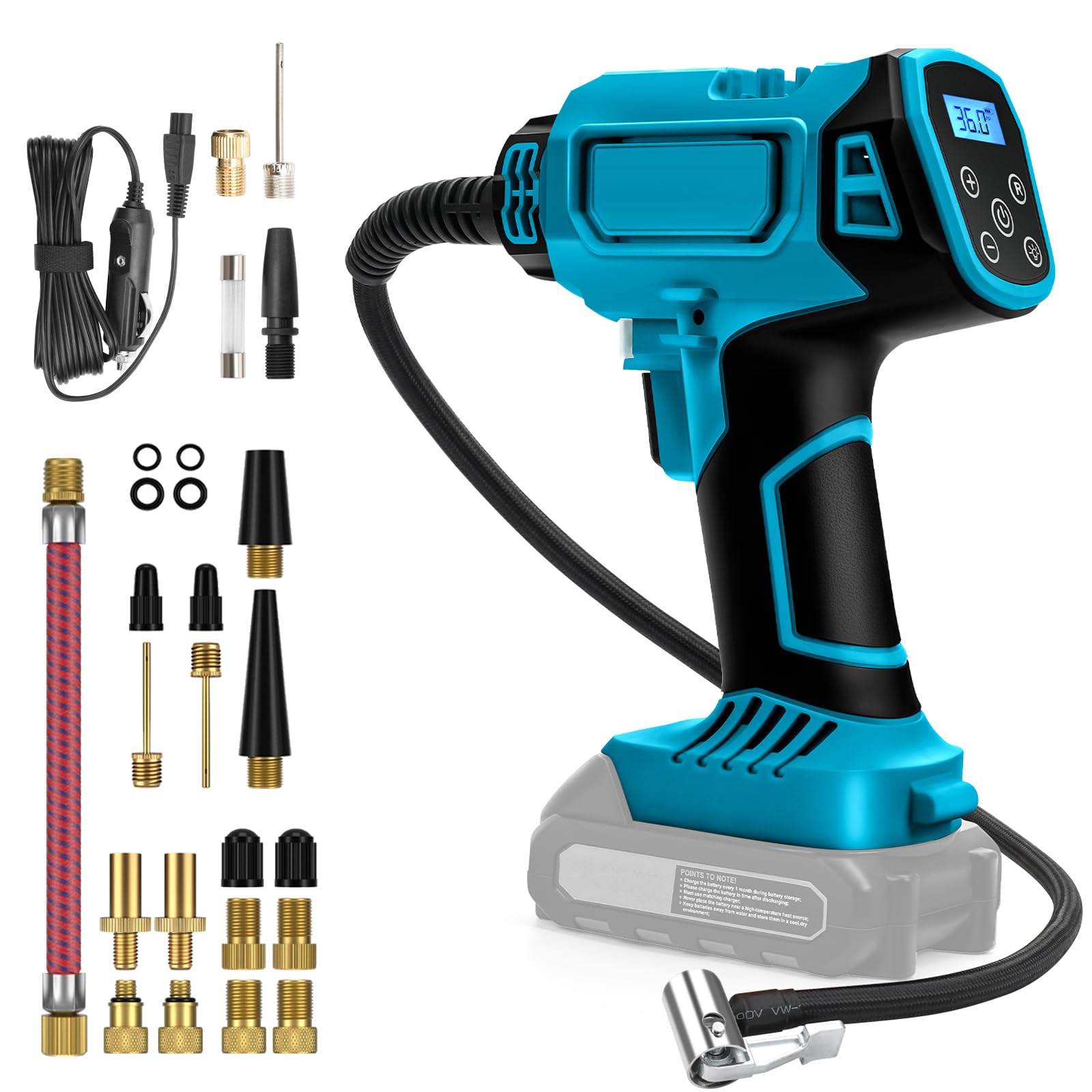 Battery compressor for Makita 18v, 130PSI electric air pump car compressor, LED digital pressure display, auto-off function, ideal for bicycle/car/ball (A)