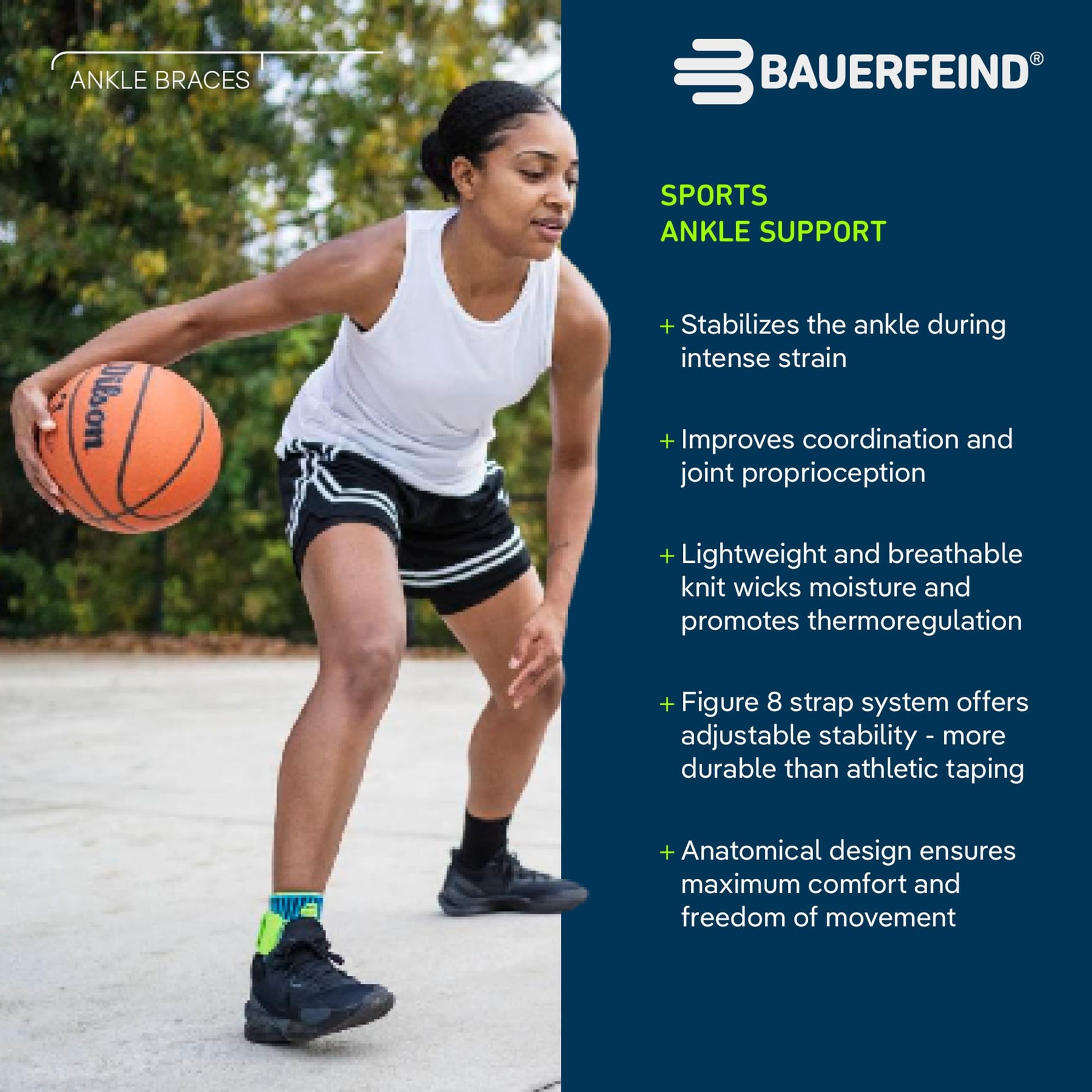 BAUERFEIND Ankle Support ankle brace for sports like soccer, fitness, and running. Prevents ankle injuries and provides stability. Pink, size L.