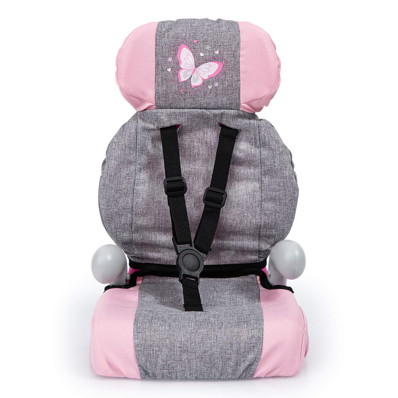 ["Doll car seat in modern design suitable for dolls up to 18 inches", "Car seat for dolls with headrest and armrest realistically designed", "Doll seat with seatbelt for secure seating of the doll", "Doll seat can be used as a table seat, perfect for feeding the baby doll", "Great doll accessory suitable for a variety of children's role-playing games"]