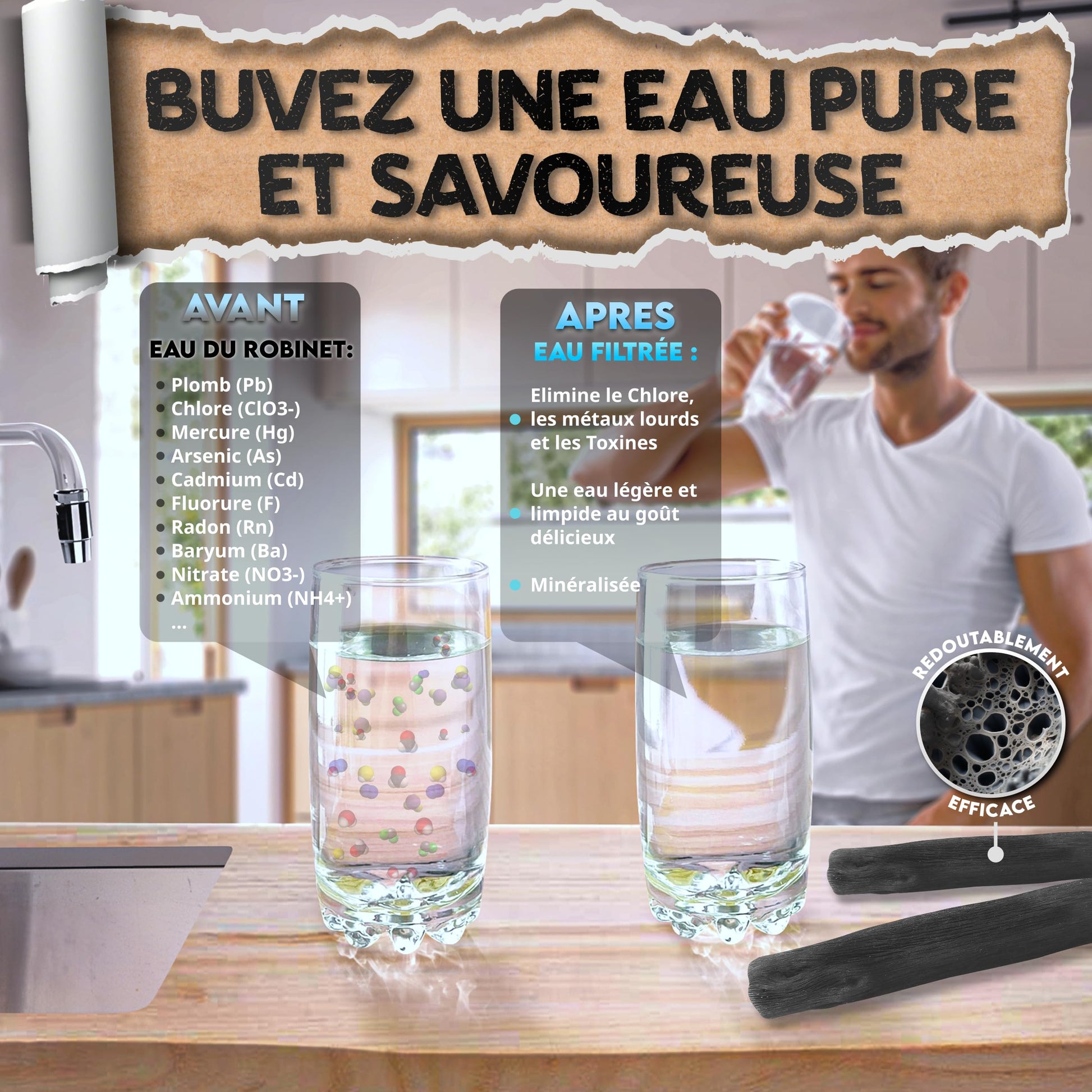 ["💦 CLEAN WATER: free from toxins and heavy metals, eliminating its bad chlorine taste and mineralized","♻️ PROTECT THE PLANET: Drinking 1 liter a day means reducing plastic waste by 18.5 lbs per year and CO2 emissions by 148 lbs per year","💰 ECONOMICAL: Each filter stick provides you with 6 months of pure water for the whole family without any expenses","📜 HISTORY: Since the 16th century, the Japanese have been harnessing the wonderful power of Kishu Binchotan... All secrets are included in the FREE EBOOK","📑 GUARANTEED: Risk-free, you can return the Binchotan to us for free within 30 days"]