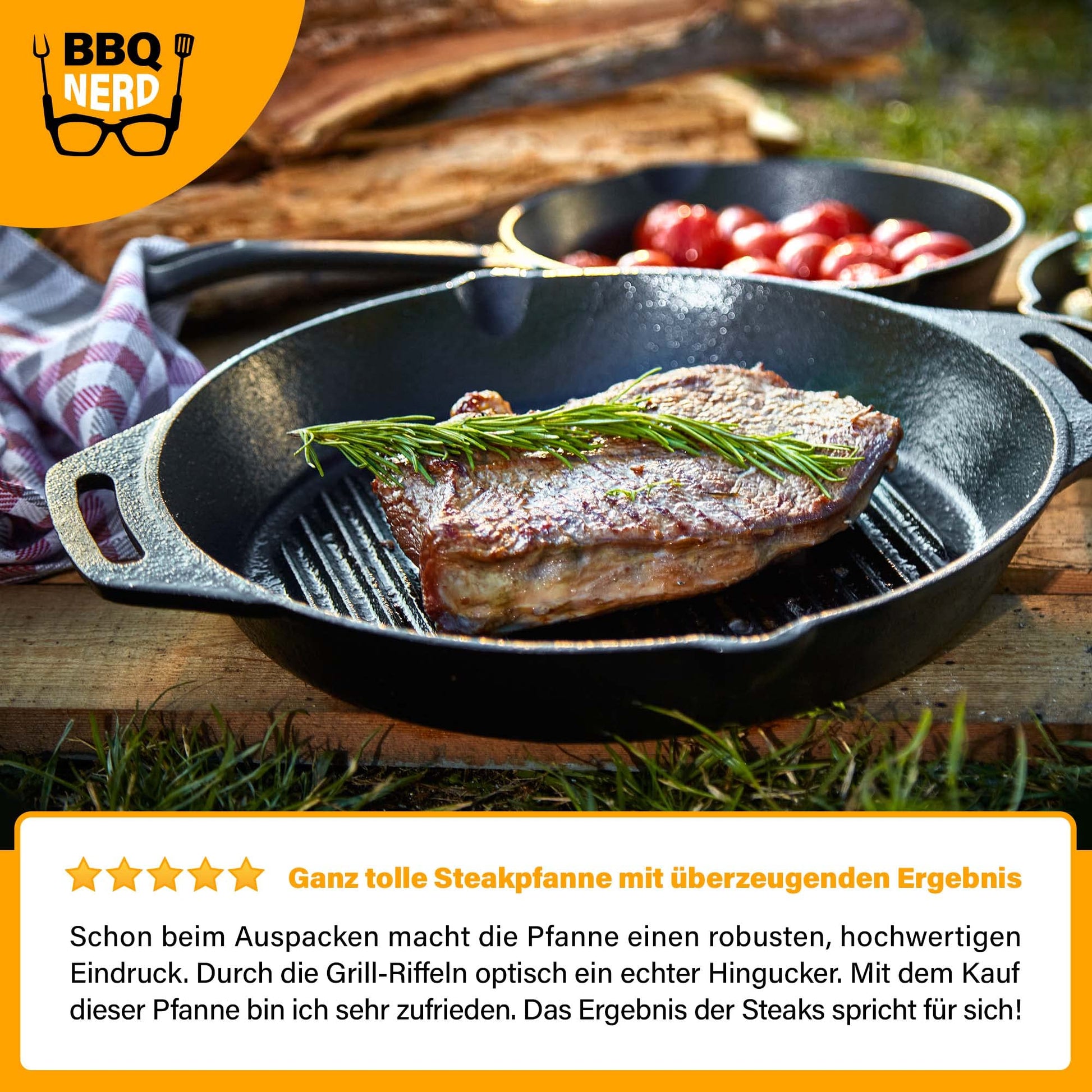 BBQ Nerd Cast Iron Grill Pan - with ridged bottom for beautiful grill marks - Steak Pan Ø 35 cm 4550g with spout and handle - Non-stick pan Skillet Outdoor Pan