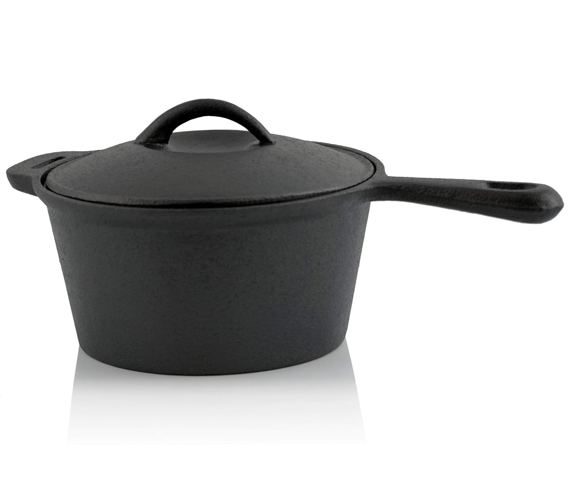 ["SET CONTENT | The 8-piece Dutch Oven Set includes a wooden box, a Dutch Oven 4.5 QT, a trivet, a lid lifter, a grill plate, a saucepan, and a frying pan.", "WHAT IS THE DUTCH OVEN? | A heavy, traditional, cast iron pot with a perfectly fitting lid that can be used for cooking, frying, stewing, frying, steaming, and baking anywhere. Whether at a campfire, BBQ area, or bonfire, it is mobile and versatile.", "THE PRINCIPLE | The Dutch Oven regulates uneven heat thanks to its high mass (cast iron) and allows for even cooking. Simply place glowing coals, embers, or charcoal briquettes on top and underneath the pot, and the Dutch Oven experience can begin.", "USAGE | Delicious dishes like pot roast, hearty stews, crispy bread, juicy cakes, and more can be effortlessly prepared in the Dutch Oven. Thanks to its versatility and easy handling, every dish cooked in the Dutch Oven becomes a highlight, whether you're cooking for a large group around a campfire or enjoying a cozy meal outdoors.", "VERSATILE | The reversible grill plate can be used on both sides. The ridged side is perfect for burger patties, while the other side is ideal for omelets and pancakes." ]