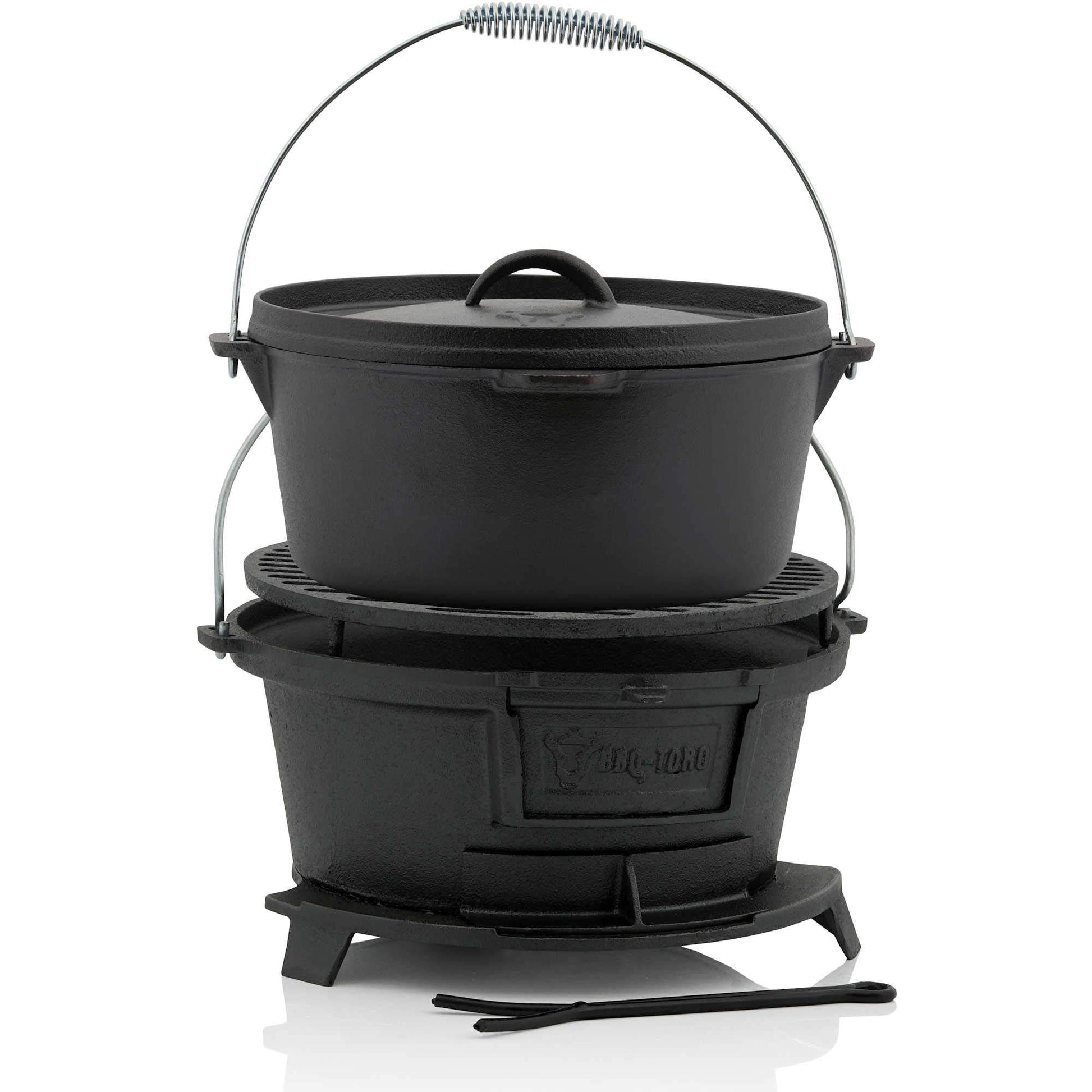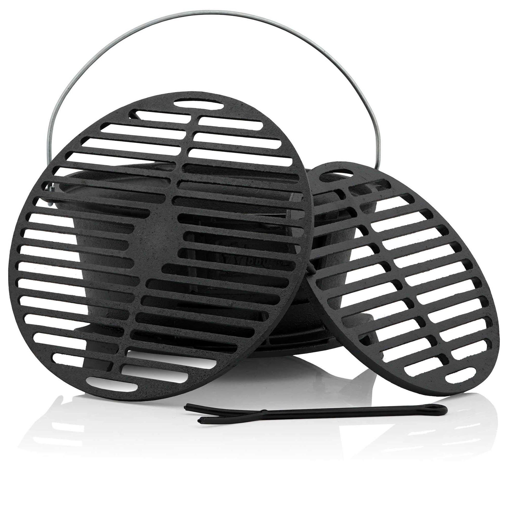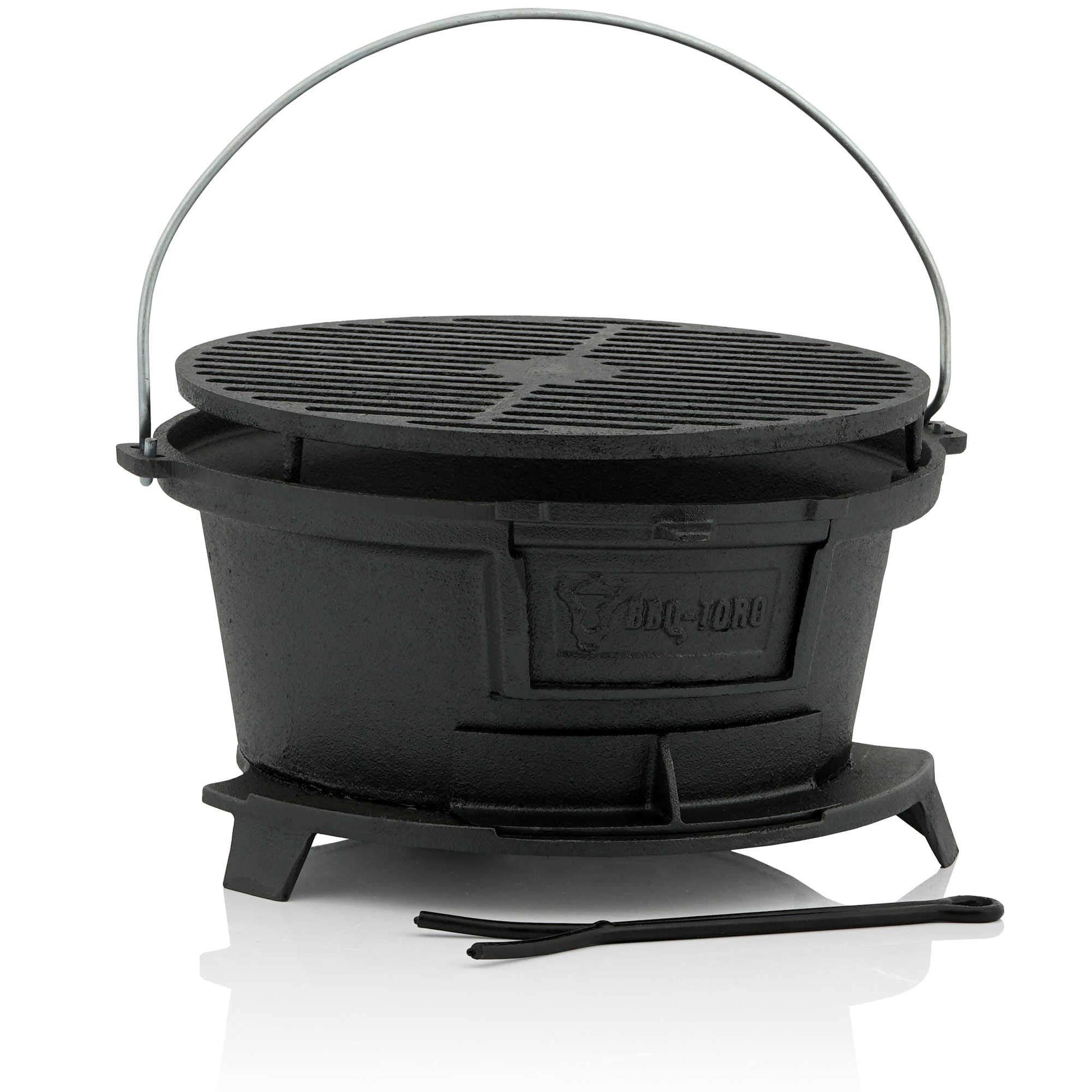 BBQ-Toro cast iron grill pot with grill grate | (W) 32 x (D) 33 x (H) 18 cm | Hibachi style grill with grate lifter | Charcoal camping grill, cast iron fire pot, BBQ grill, Dutch oven station