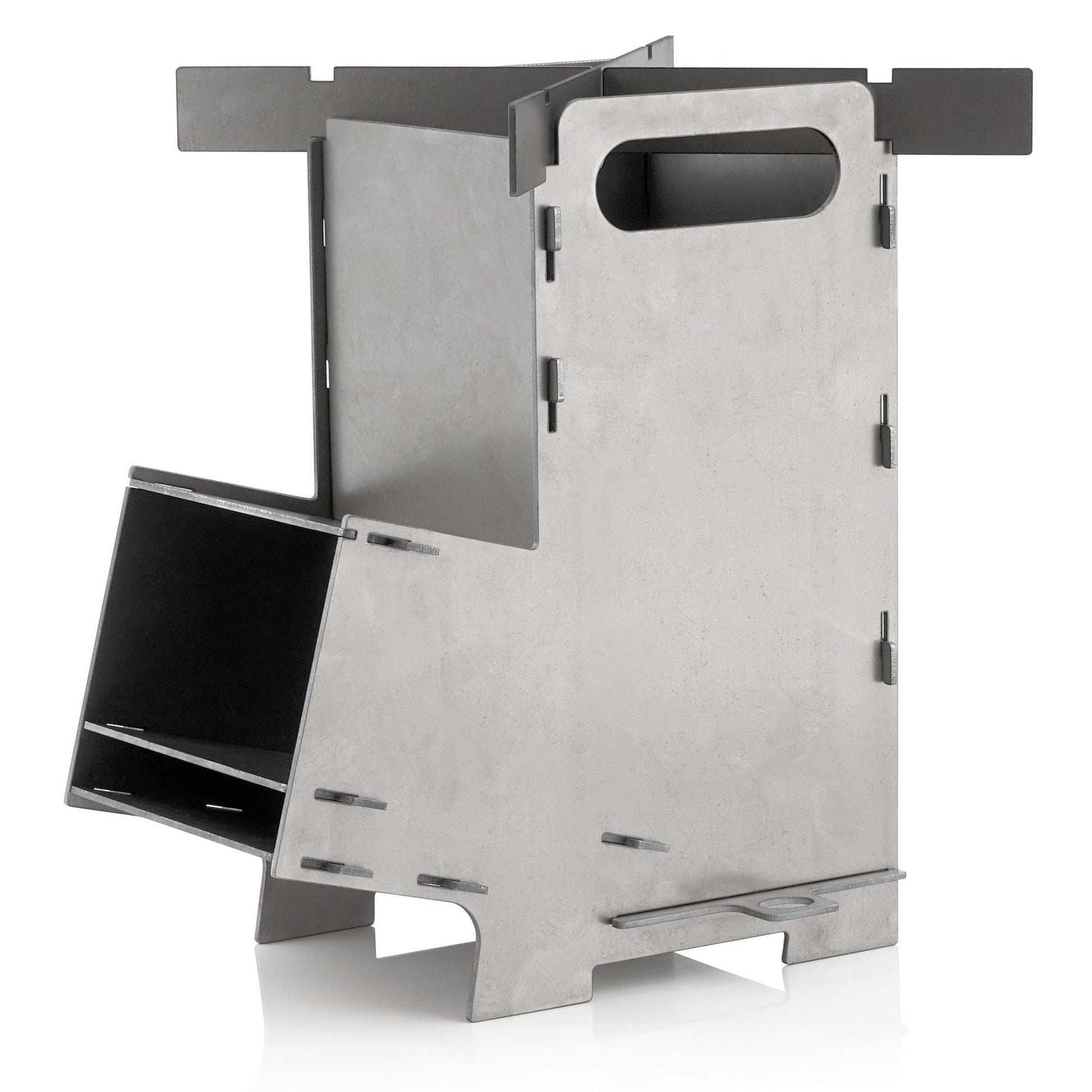 DISTRIBUTION OF HEAT | Smoke-free flame without sparks – The rocket stove offers concentrated heat generation and distribution and can be used even in windy weather. Unlike open fire grilling, no heat is lost here, allowing you to minimize cooking time.