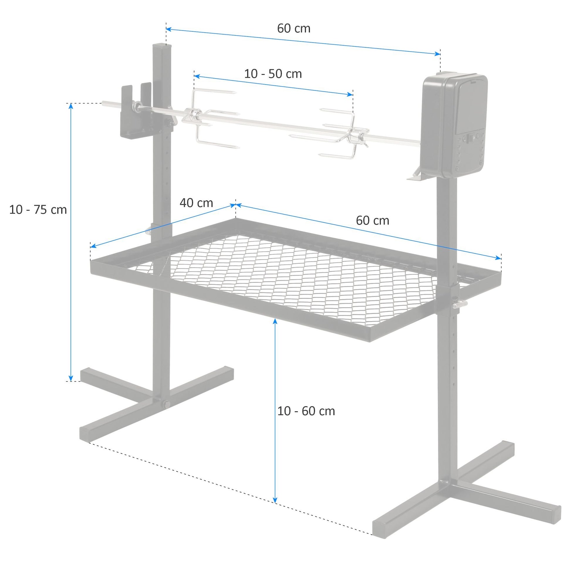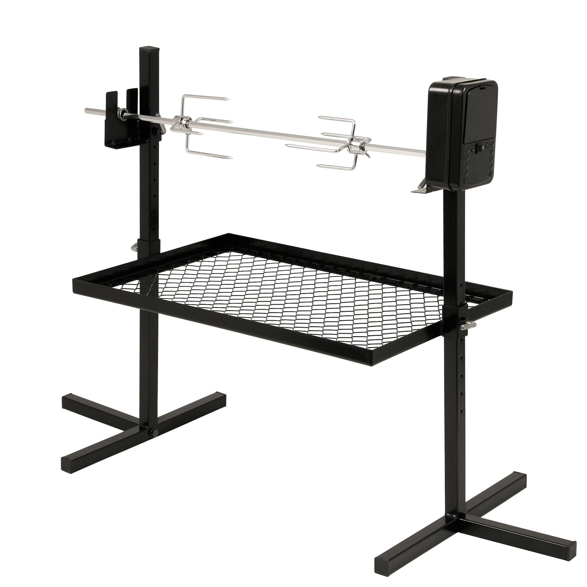 ["EASY ASSEMBLY | The skewer set can be easily set up with the stand. Thanks to the battery-operated motor, it's mobile and perfect for camping, by the campfire, fishing or hunting trips, or simply grilling in nature.",