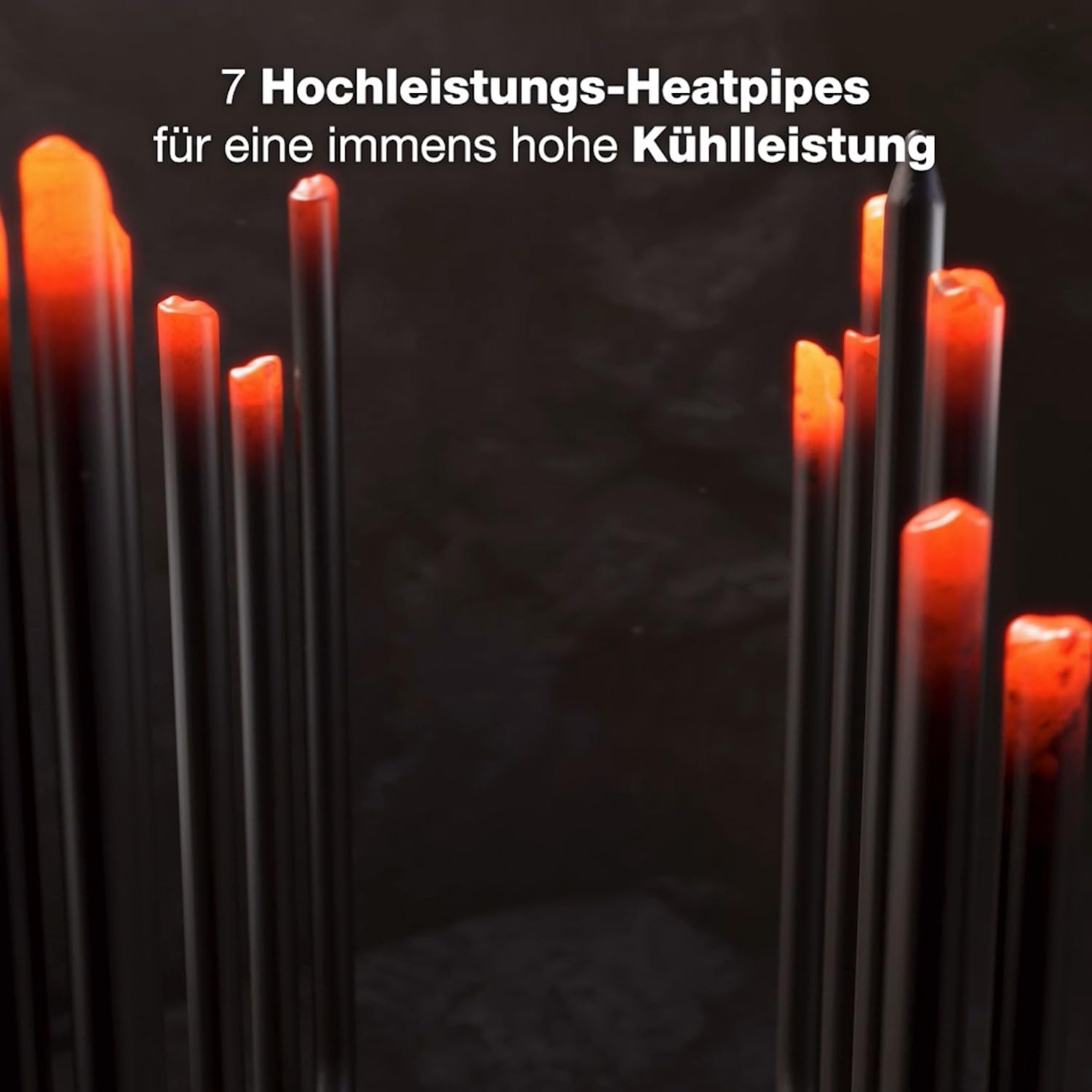 ["The Dark Rock Pro 5 features 7 high-performance copper heat pipes and a special black coating with ceramic particles. This high-end cooler keeps the CPU running at peak performance even in heavily overclocked systems and demanding workstations.",