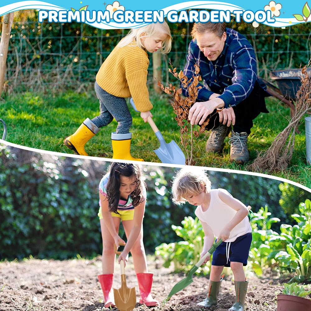Garden tool set, lightweight wooden handle and cool plastic shovel. This shovel is made of high-quality ABS plastic, with a smooth surface and no burrs, durable and non-toxic. The sturdy wooden handles are just right for small hands.